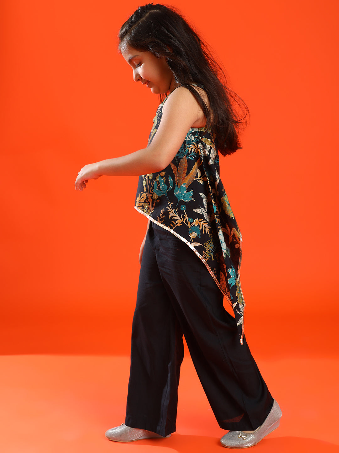 Girls Black Rayon Solid Top With Palazzo