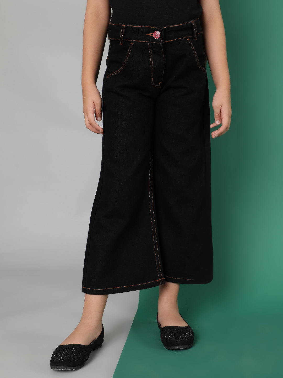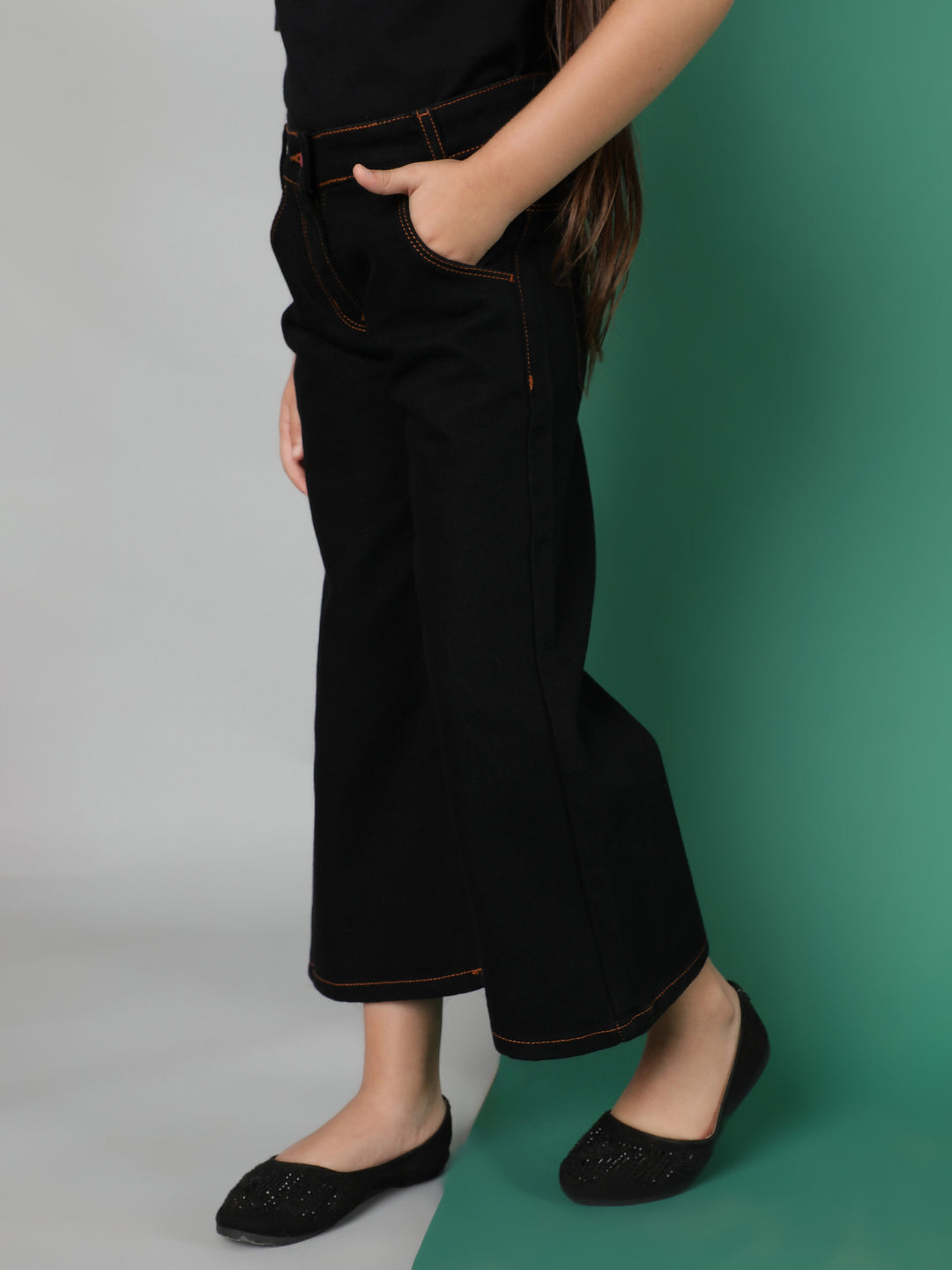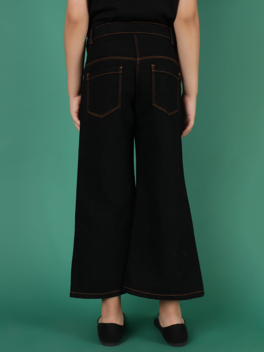 Girls Black Washed Cotton-Poly Jeans