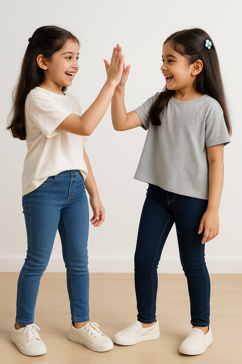 Stretchable Denim Lycra Fabric: Ensures flexibility and all-day comfort for active kids.