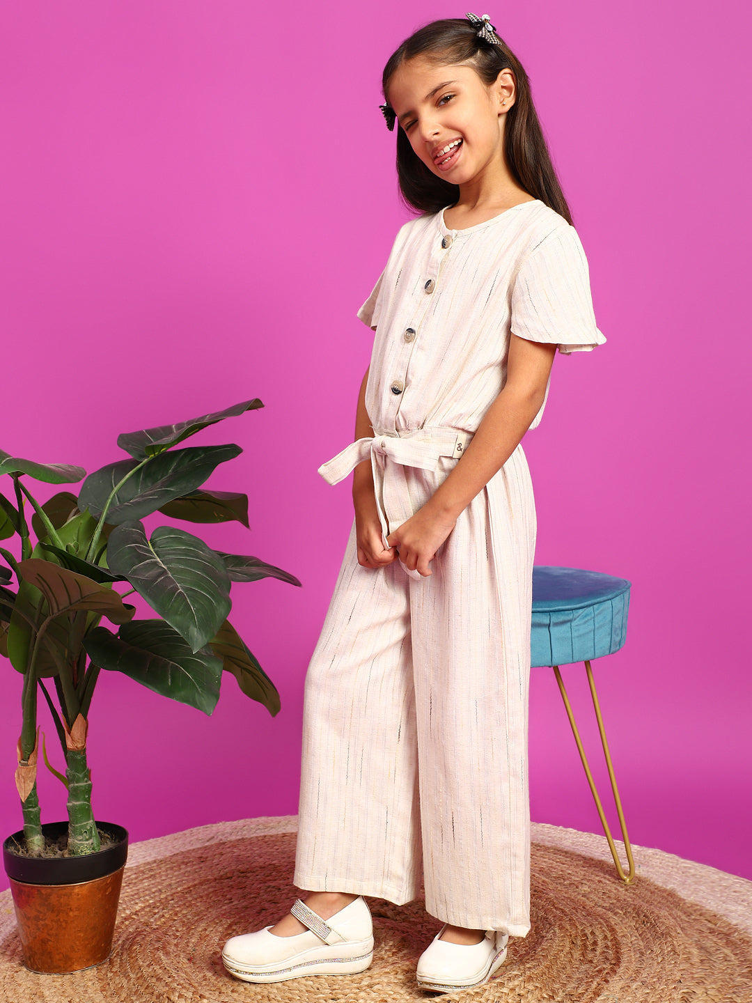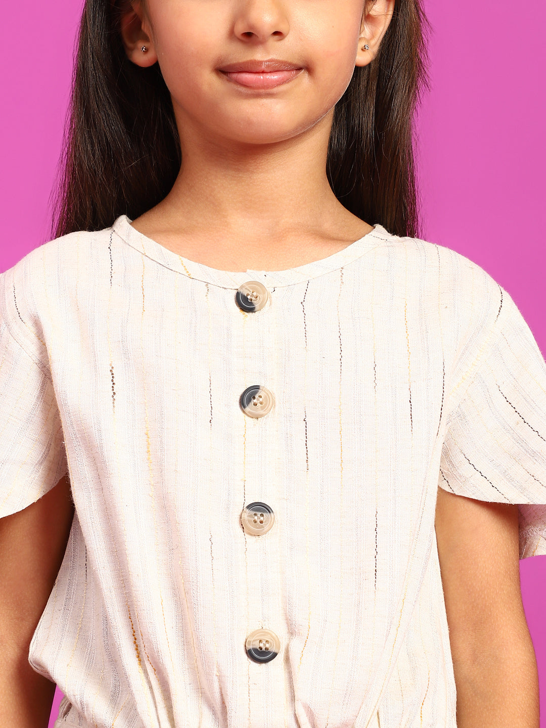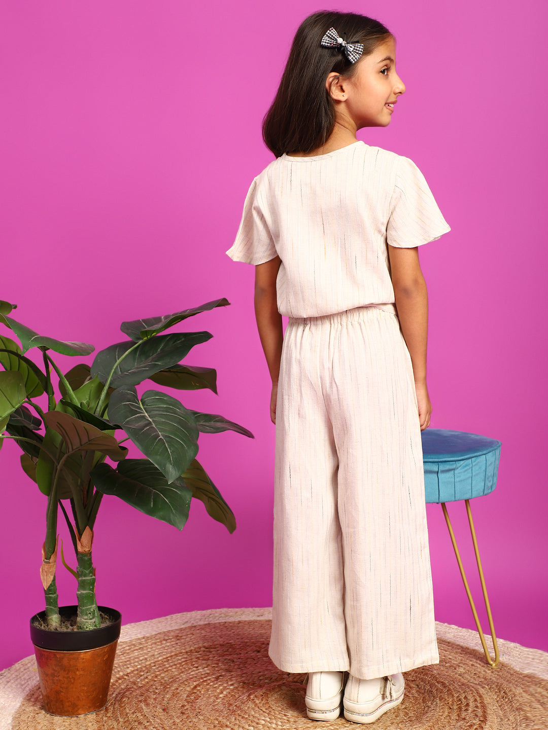 Girls Cream Rayon Slub Top With Palazzo Co-Ord Set