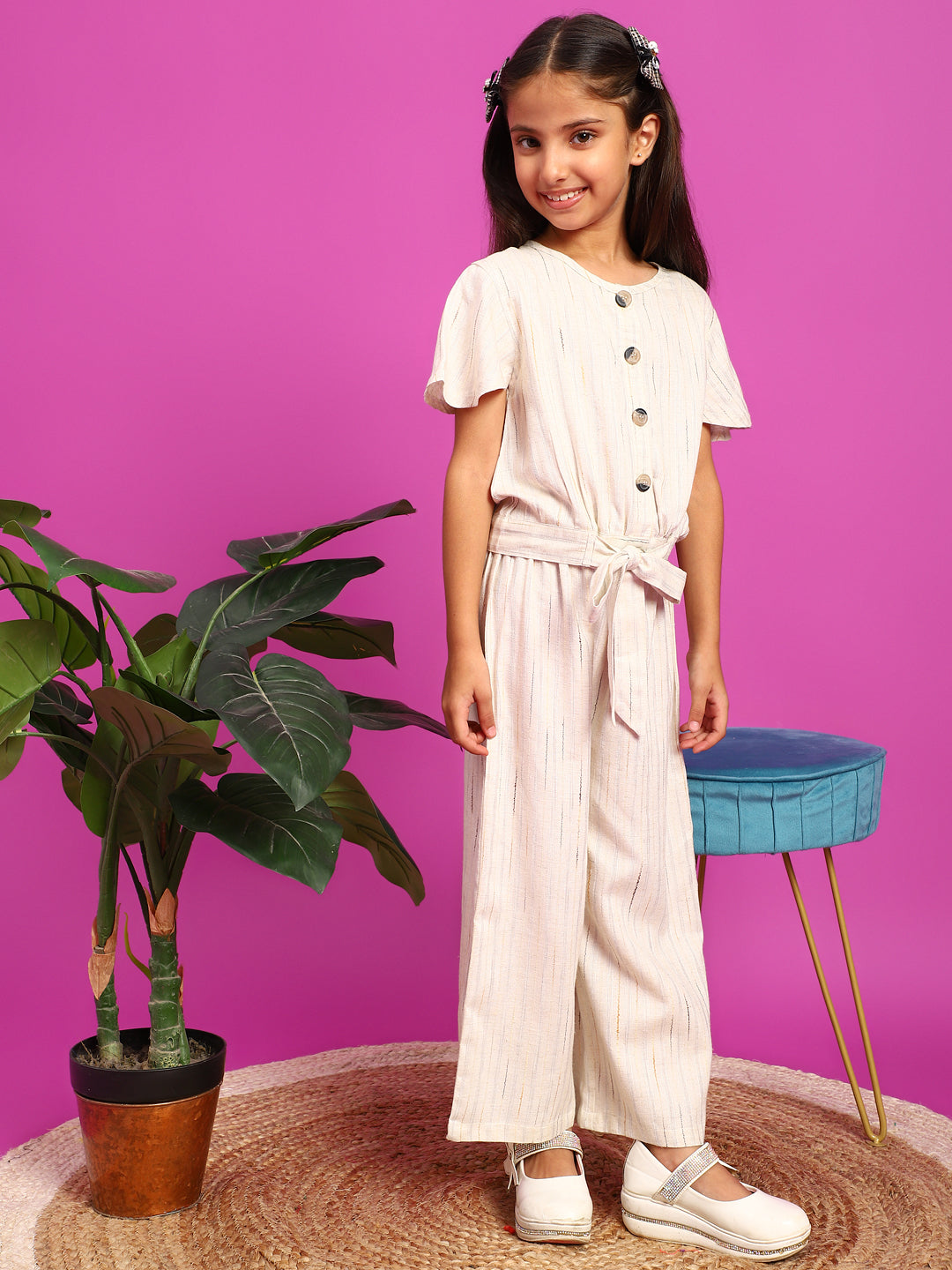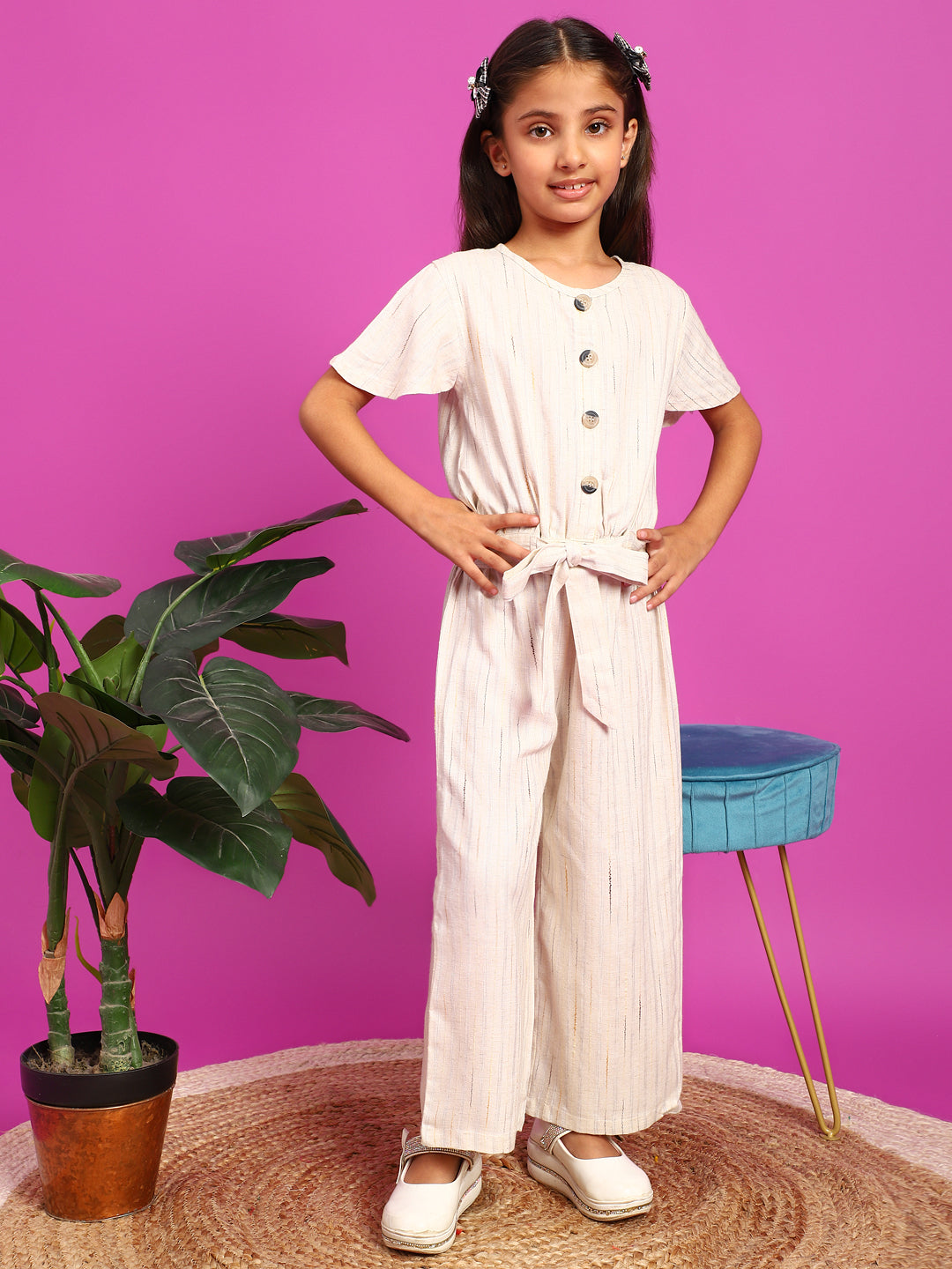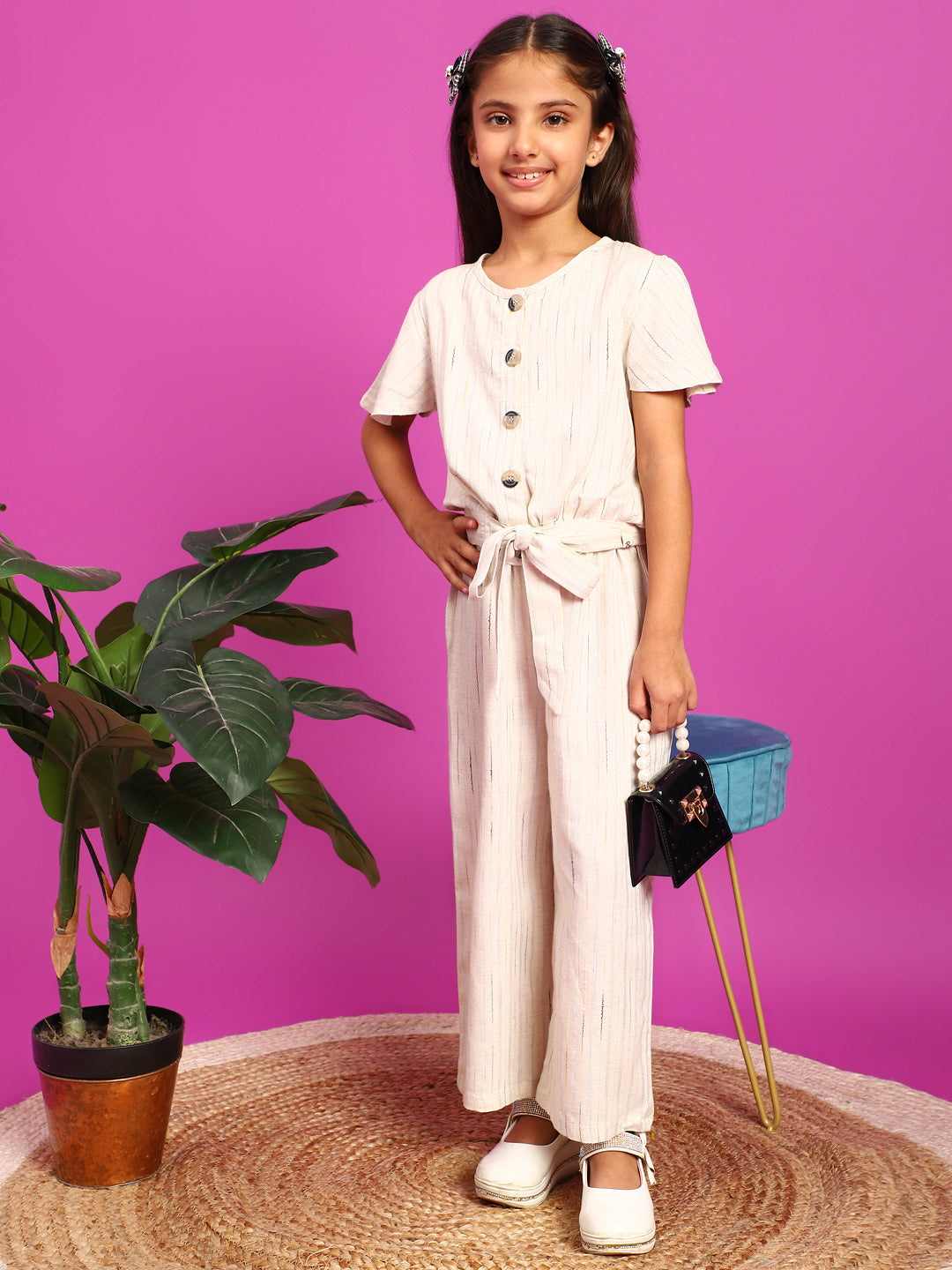 Girls Cream Rayon Slub Top With Palazzo Co-Ord Set