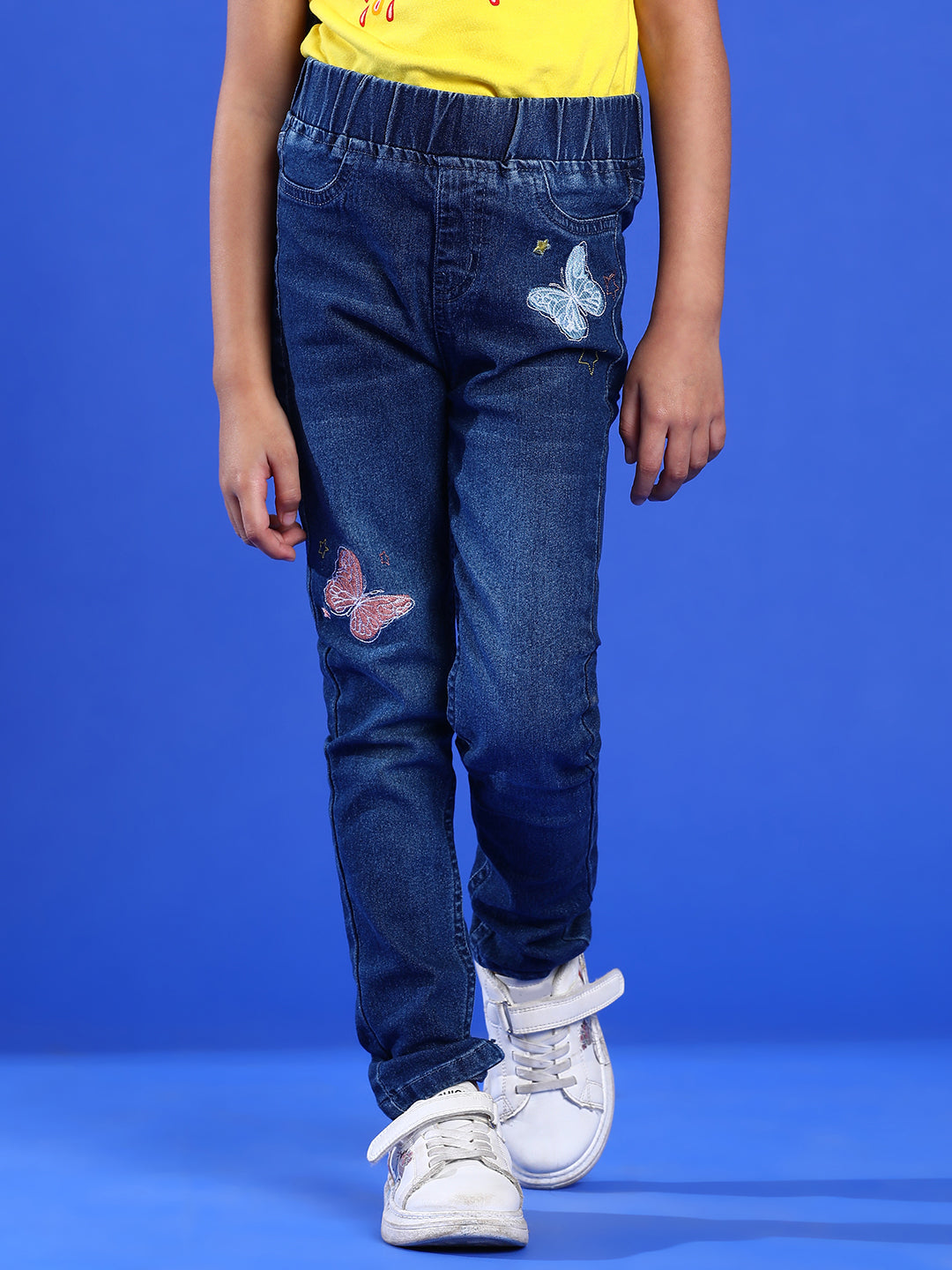 Girls Dark Blue Slim Fit Lycra Washed Jegging