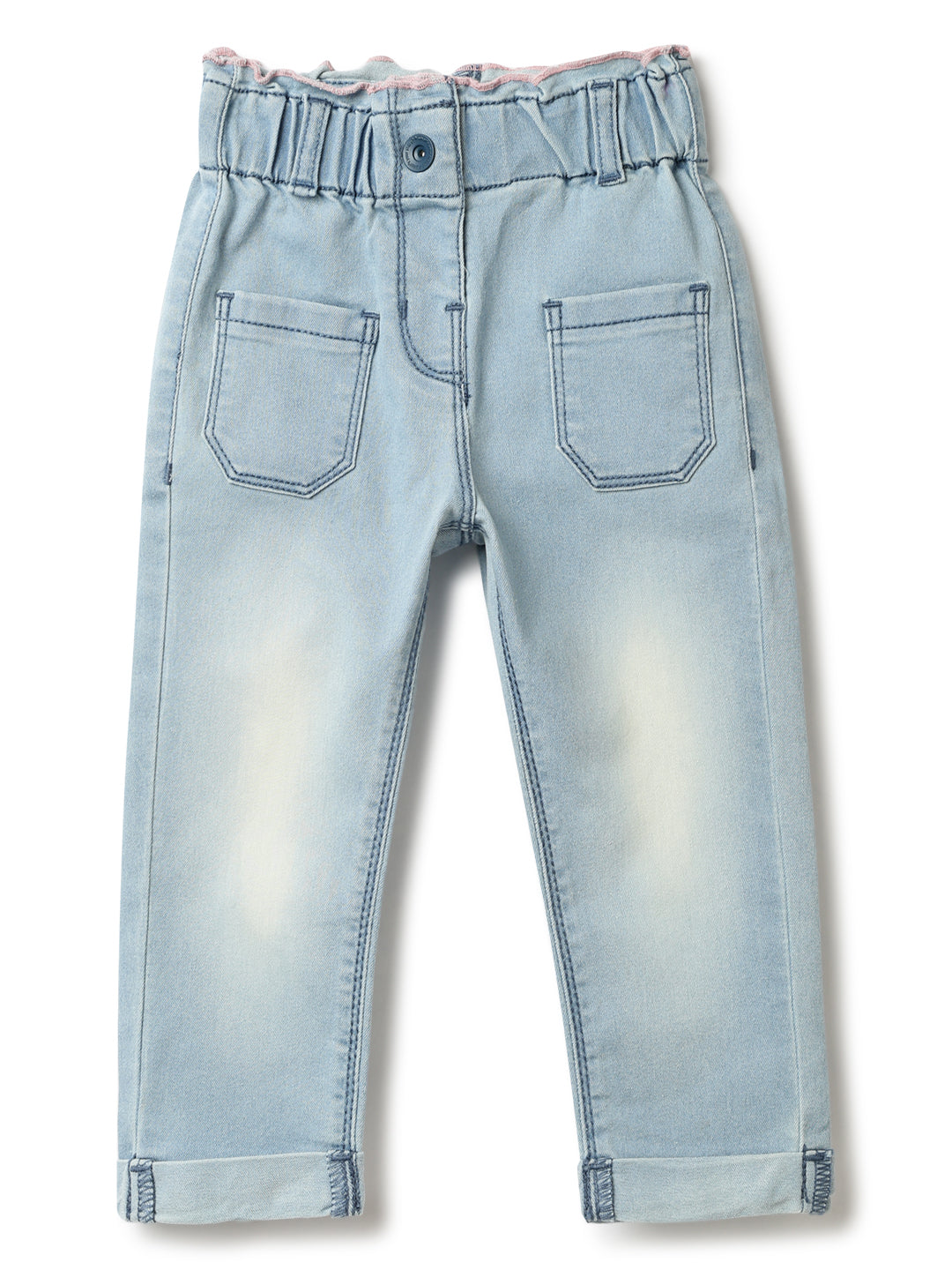 Girls Light Blue Lycra Washed Jeans