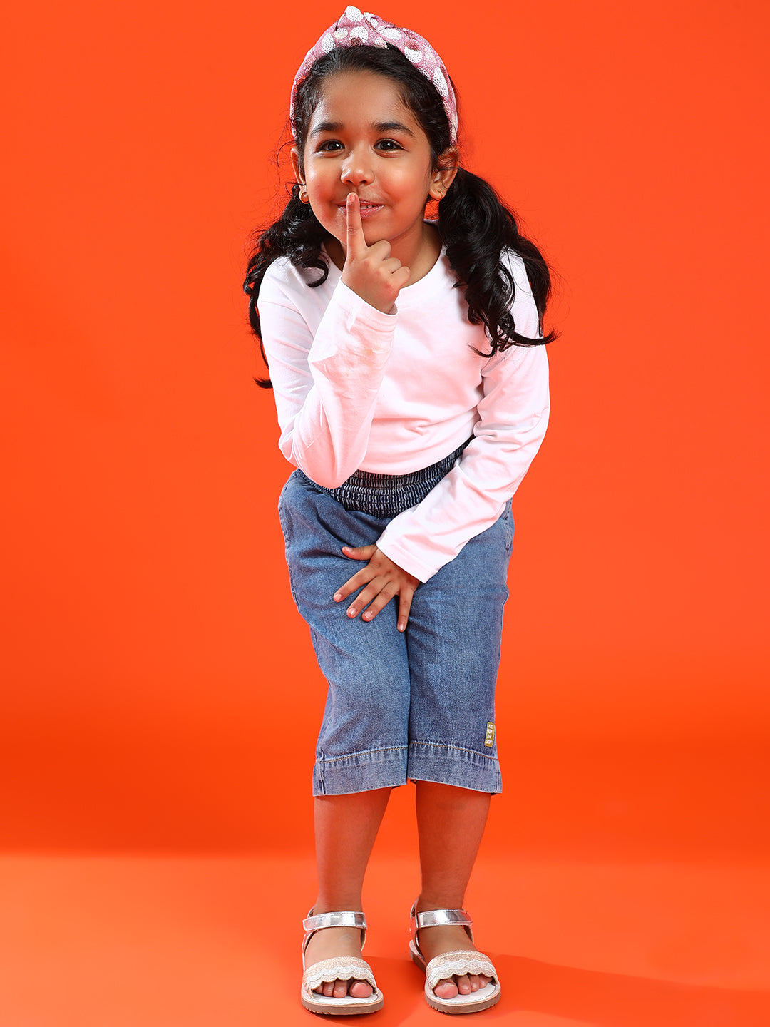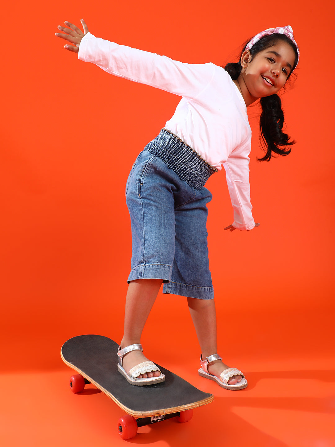 Girls Blue Slim fit Cotton Washed Capri Wide leg