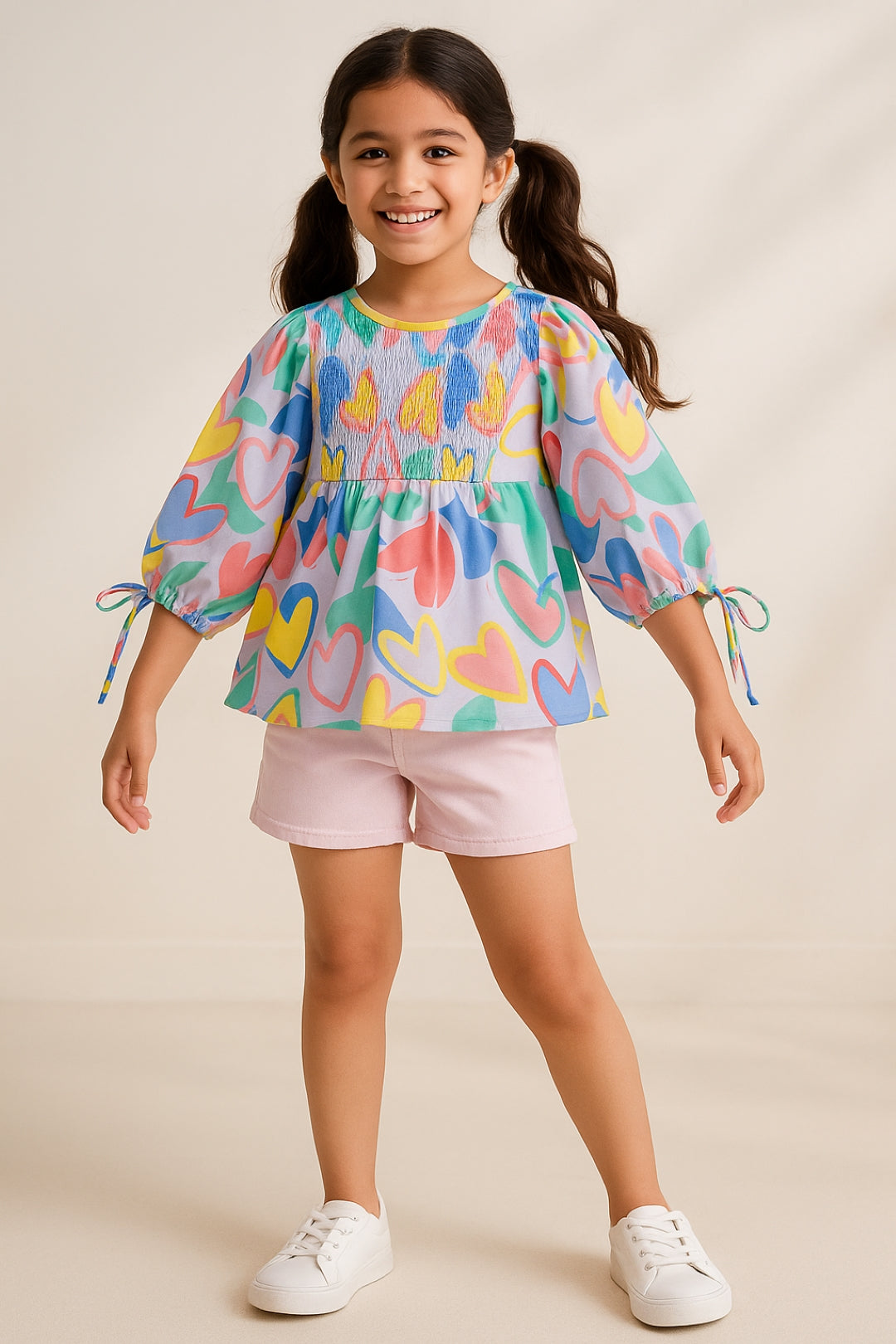Girls Multi-Colored Printed Viscose Polyester Elbow Sleeve Top