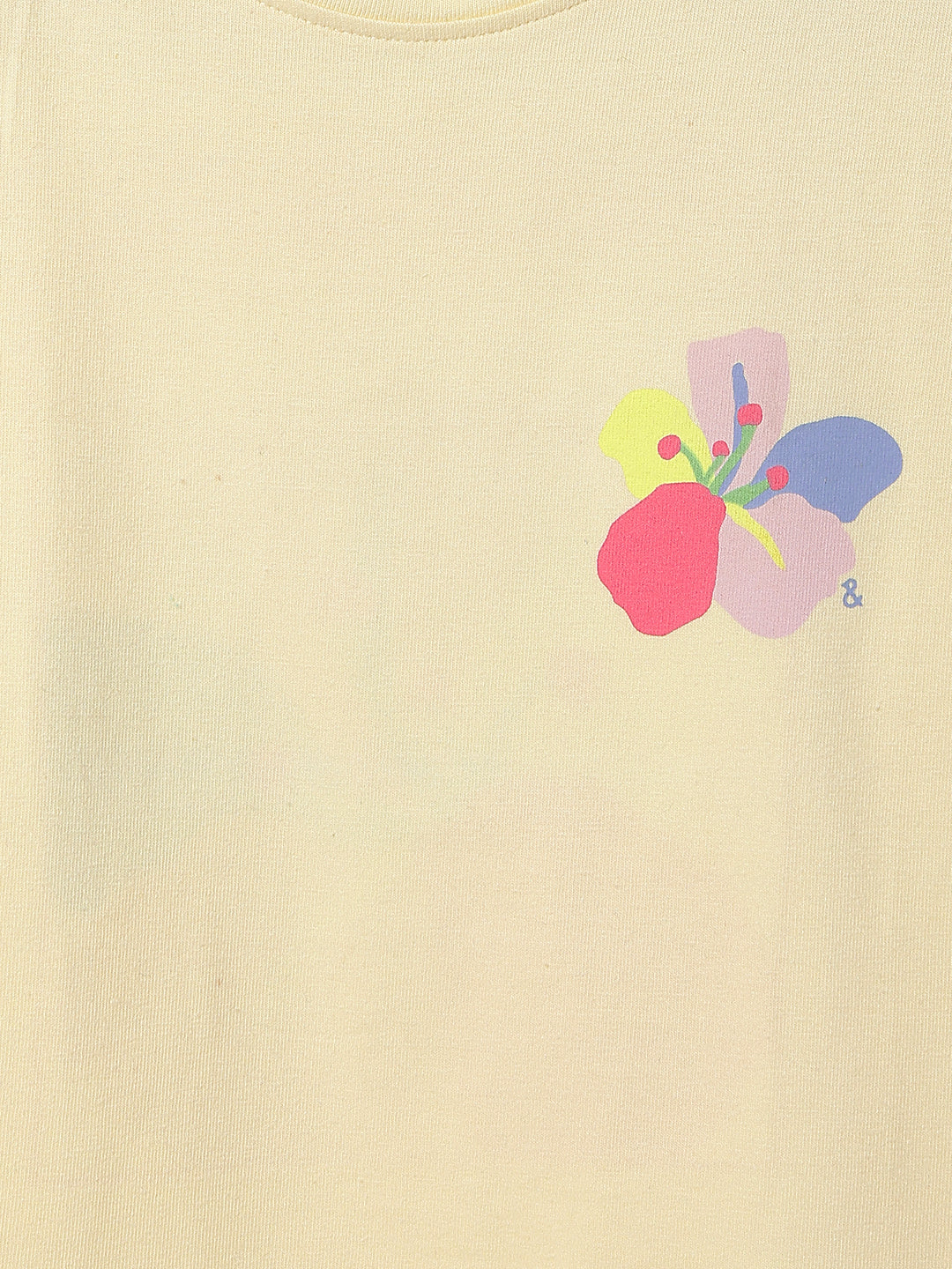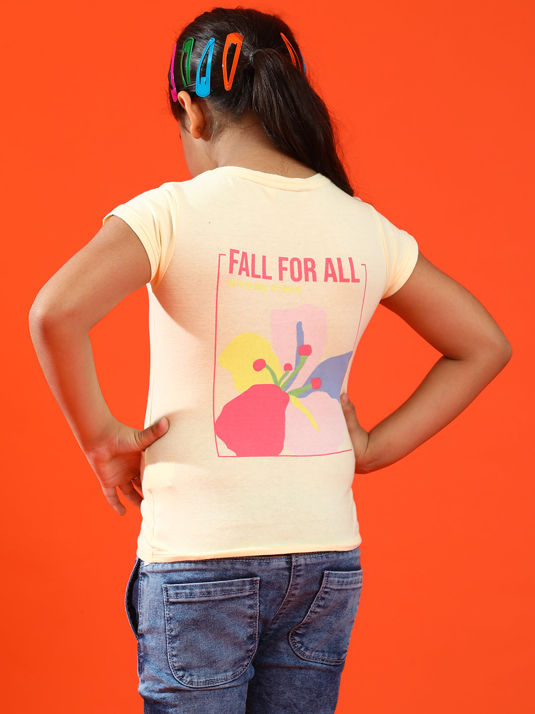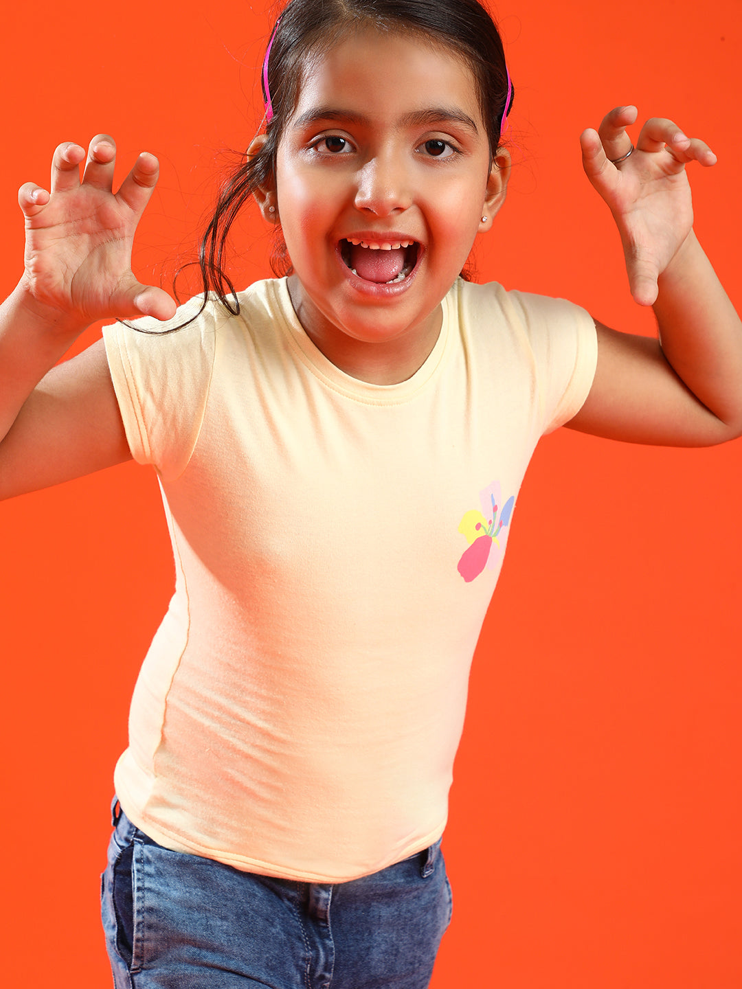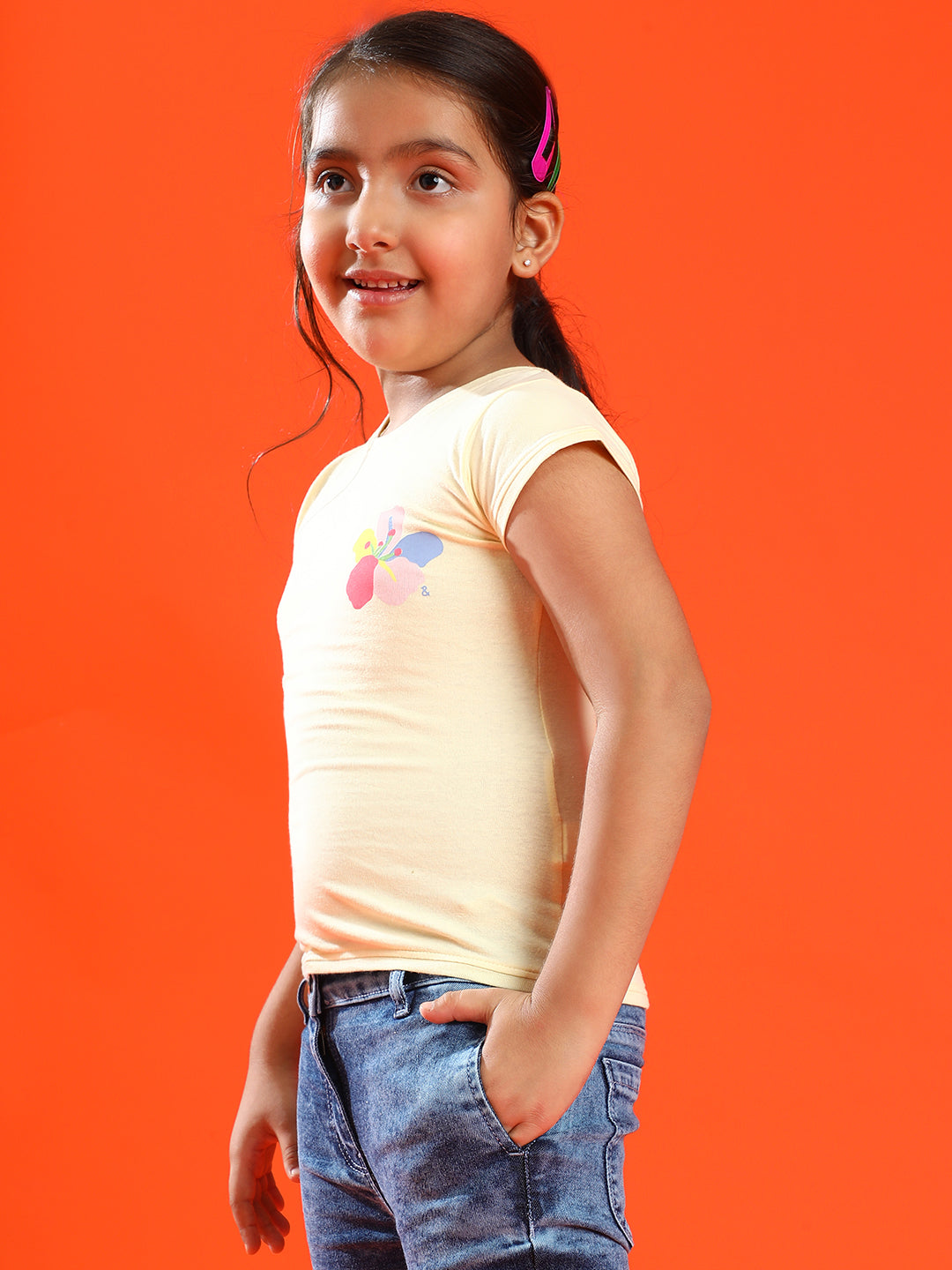 Girls Off White Lycra Printed Slim Fit T-shirt
