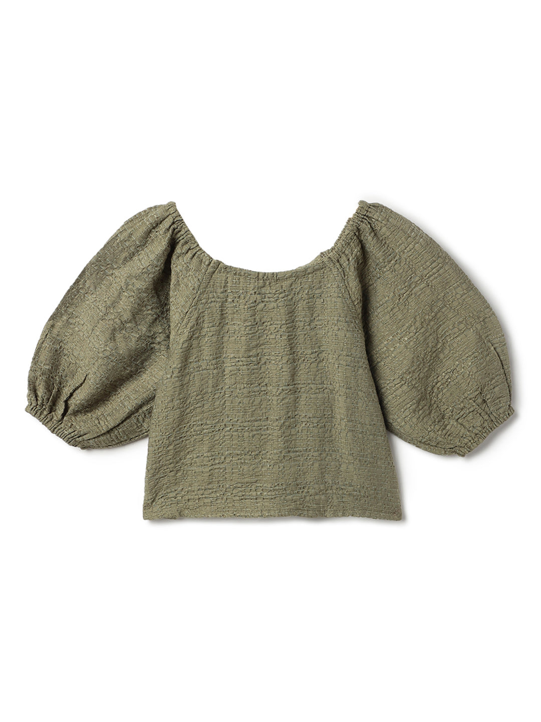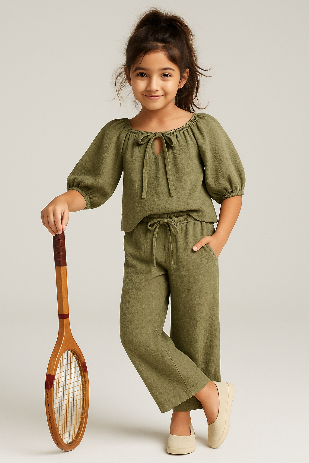 Girls Olive Green Solid Top & Palazzo Co-Ord Set