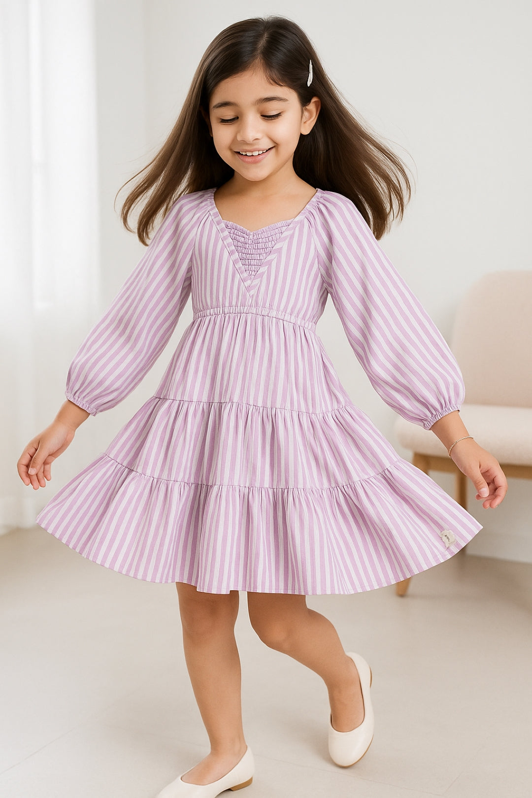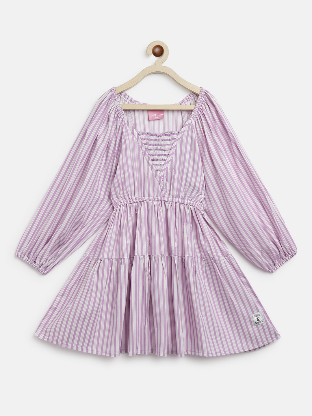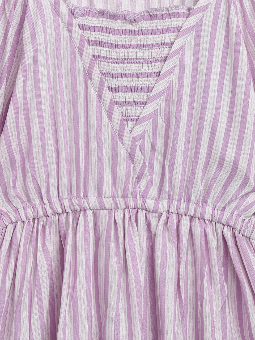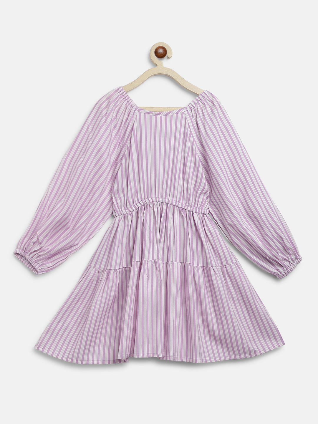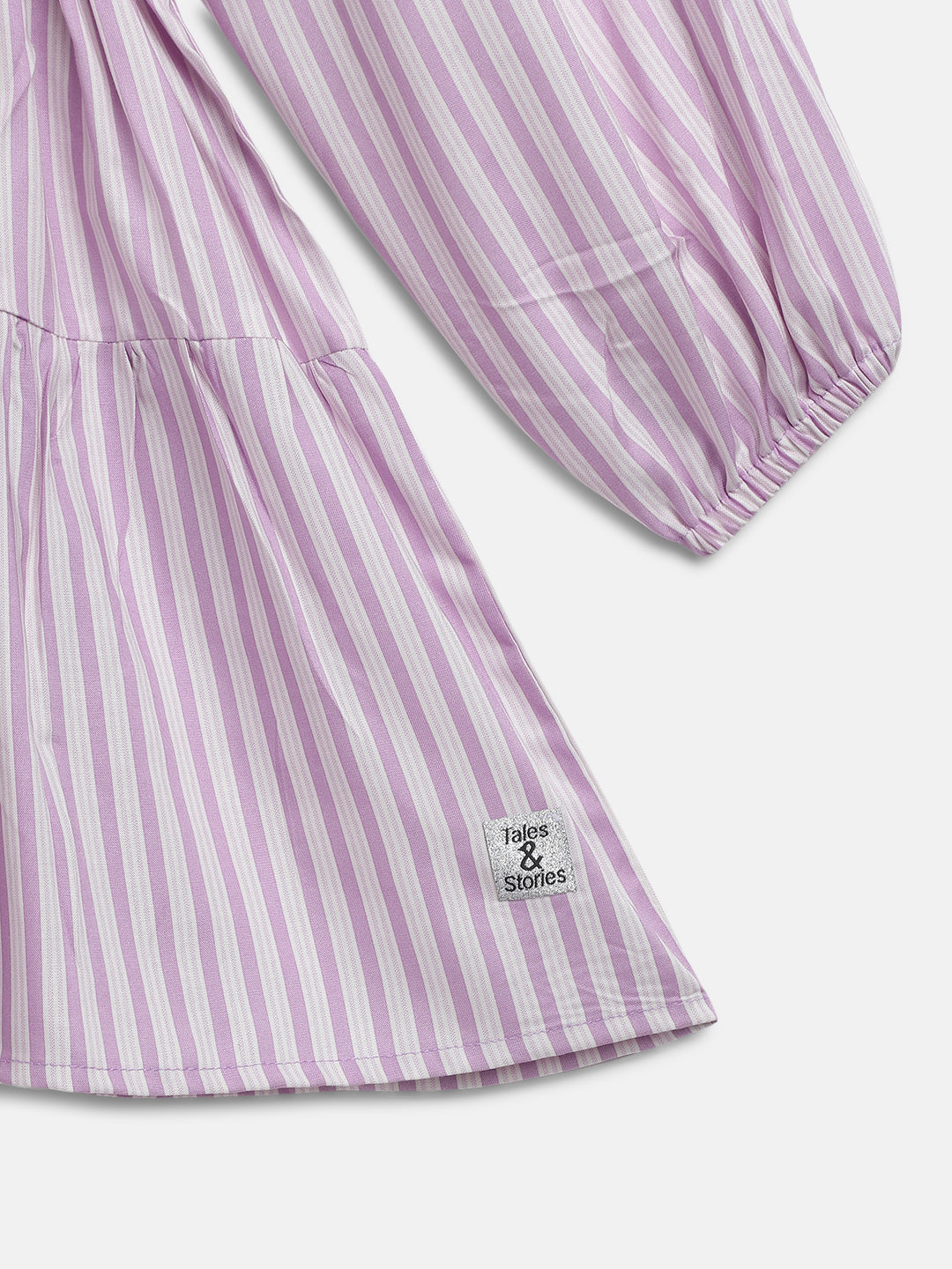 Girls Pink Rayon Regular Fit Full Sleeves Stripe Dress