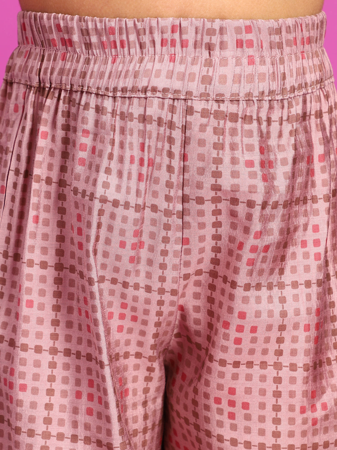 Girls Pink Rayon Printed Top With Palazzo Co-Ord Set