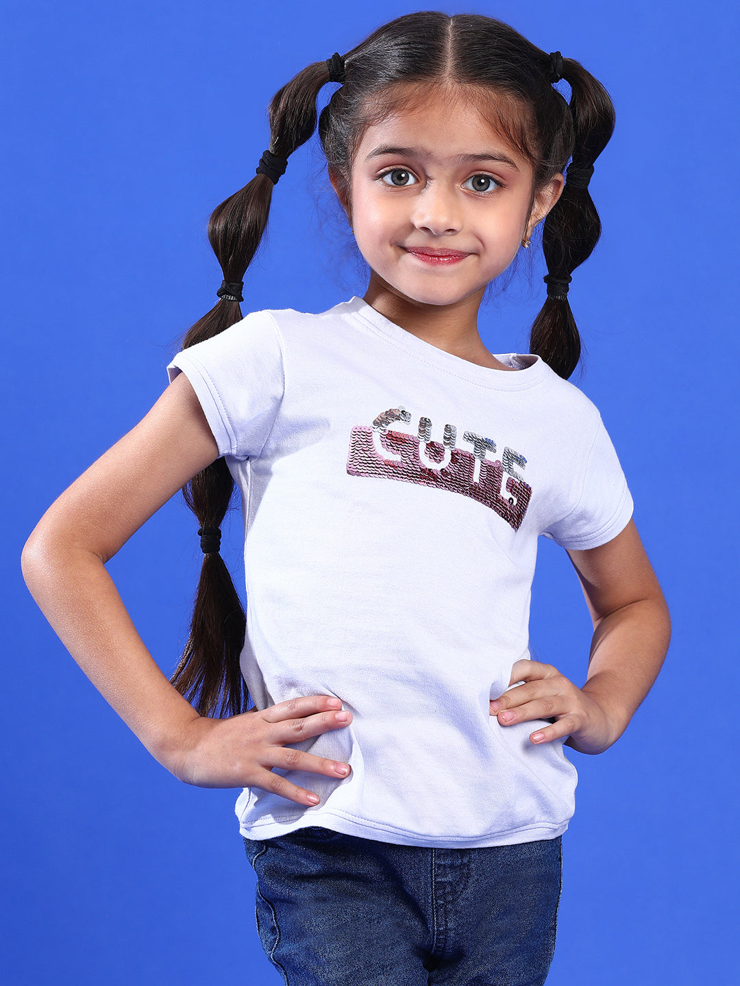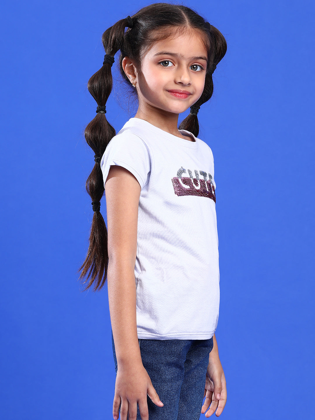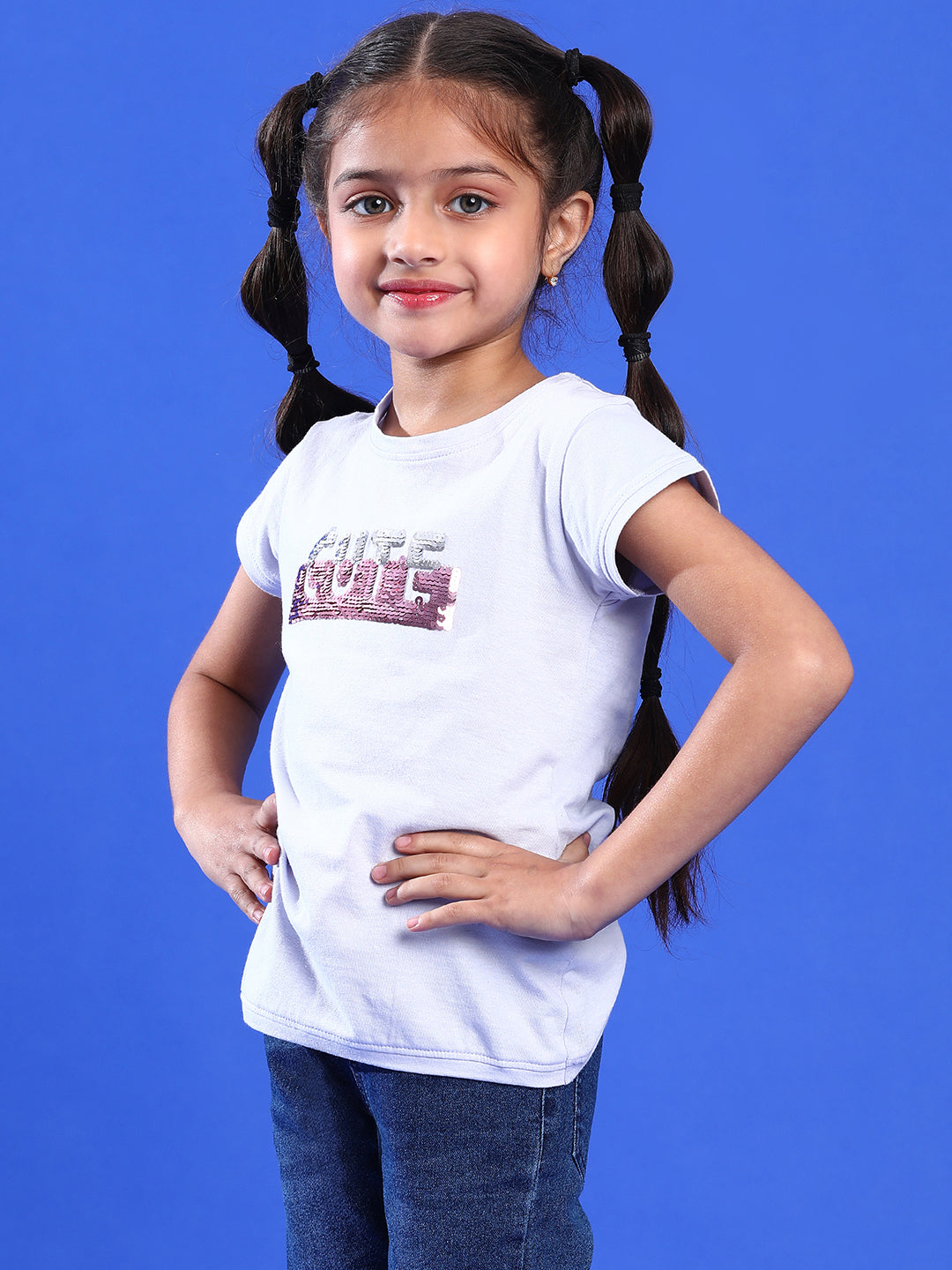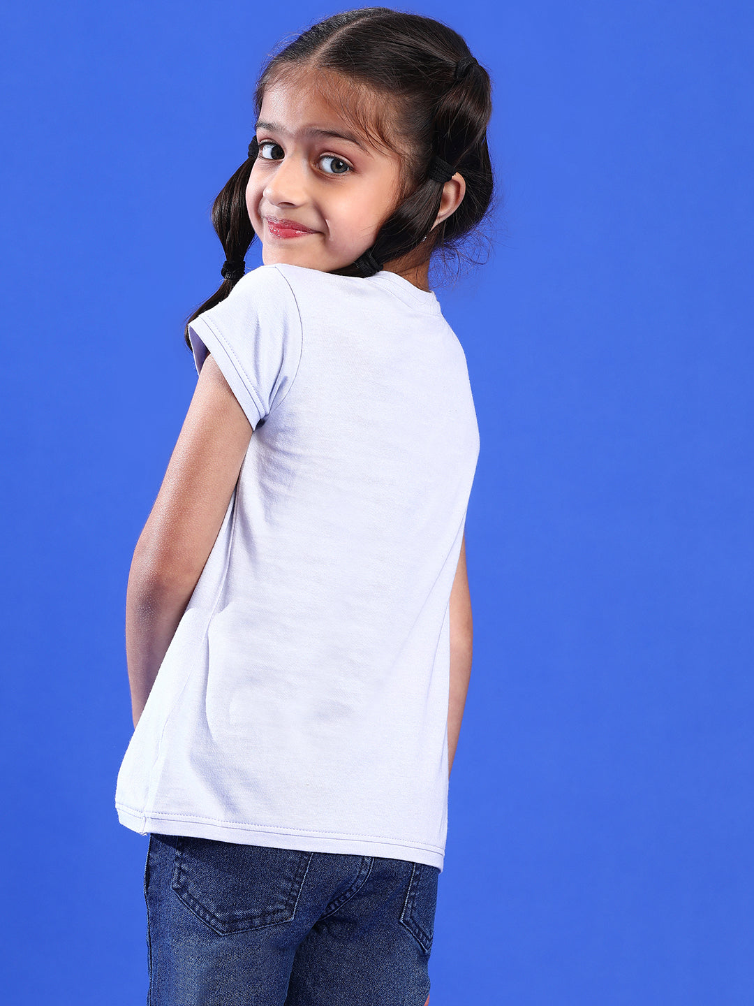 Girls Printed Dark Pink Cotton Regular Fit T-Shirts