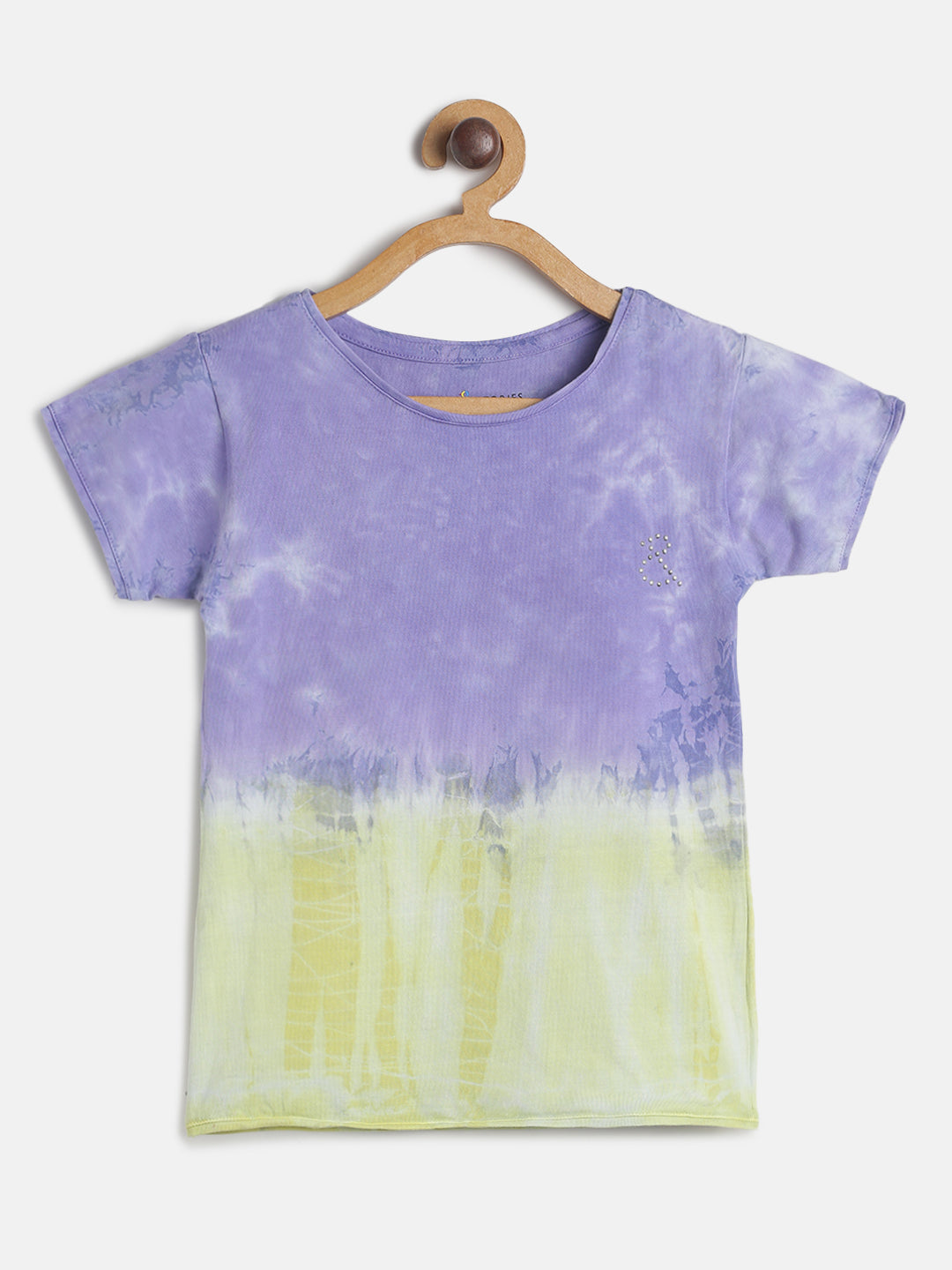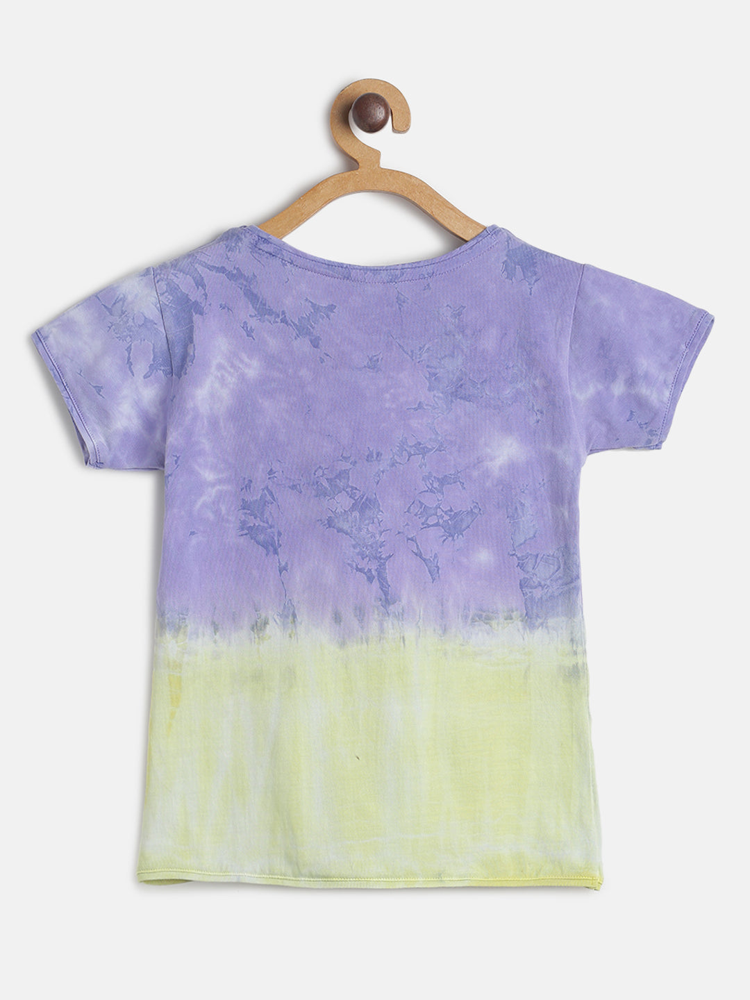 Girls Purple Lycra Tie-Dye Printed T-shirt