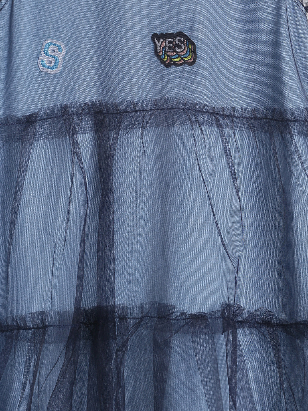 Girls Round Neck Navy Blue Regular Fit Denim Dress