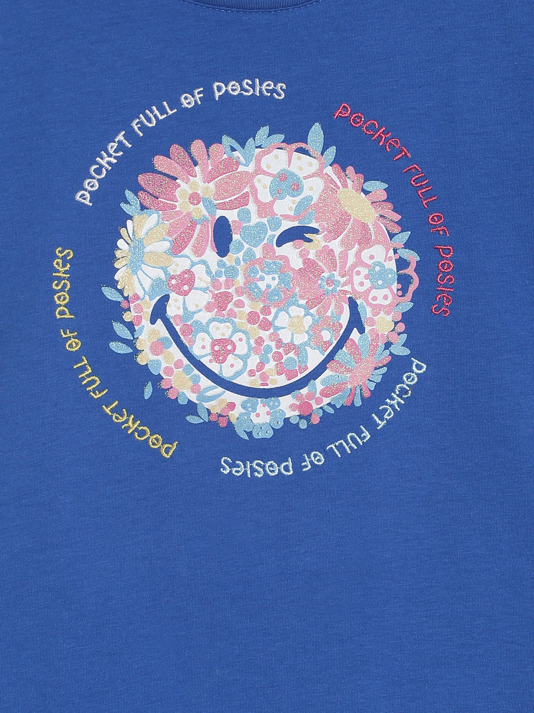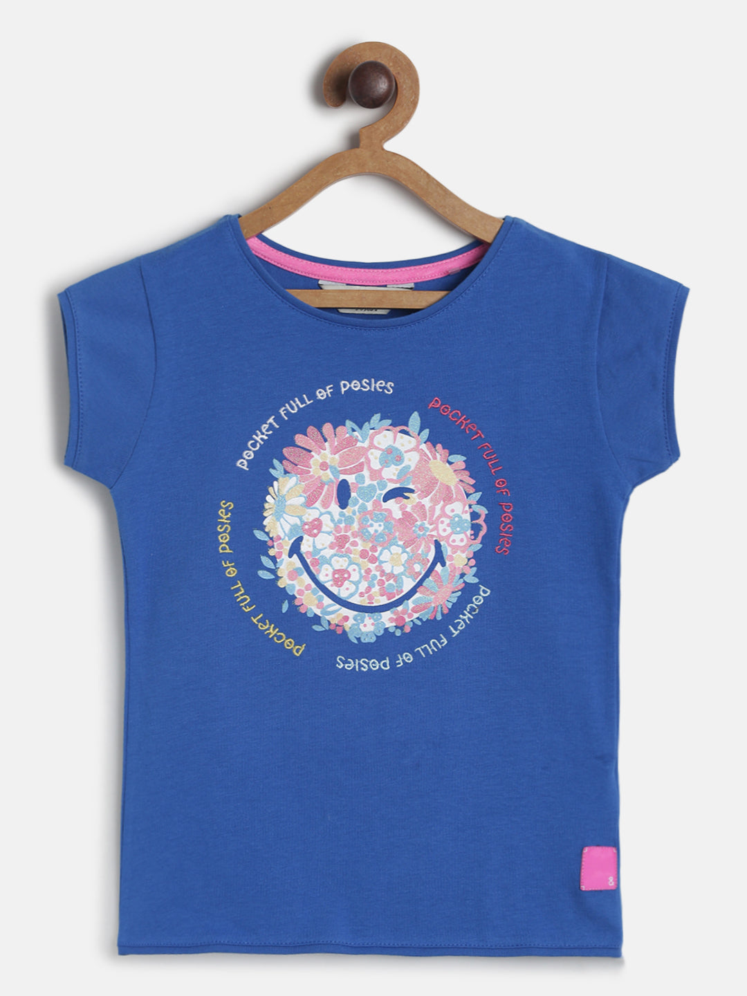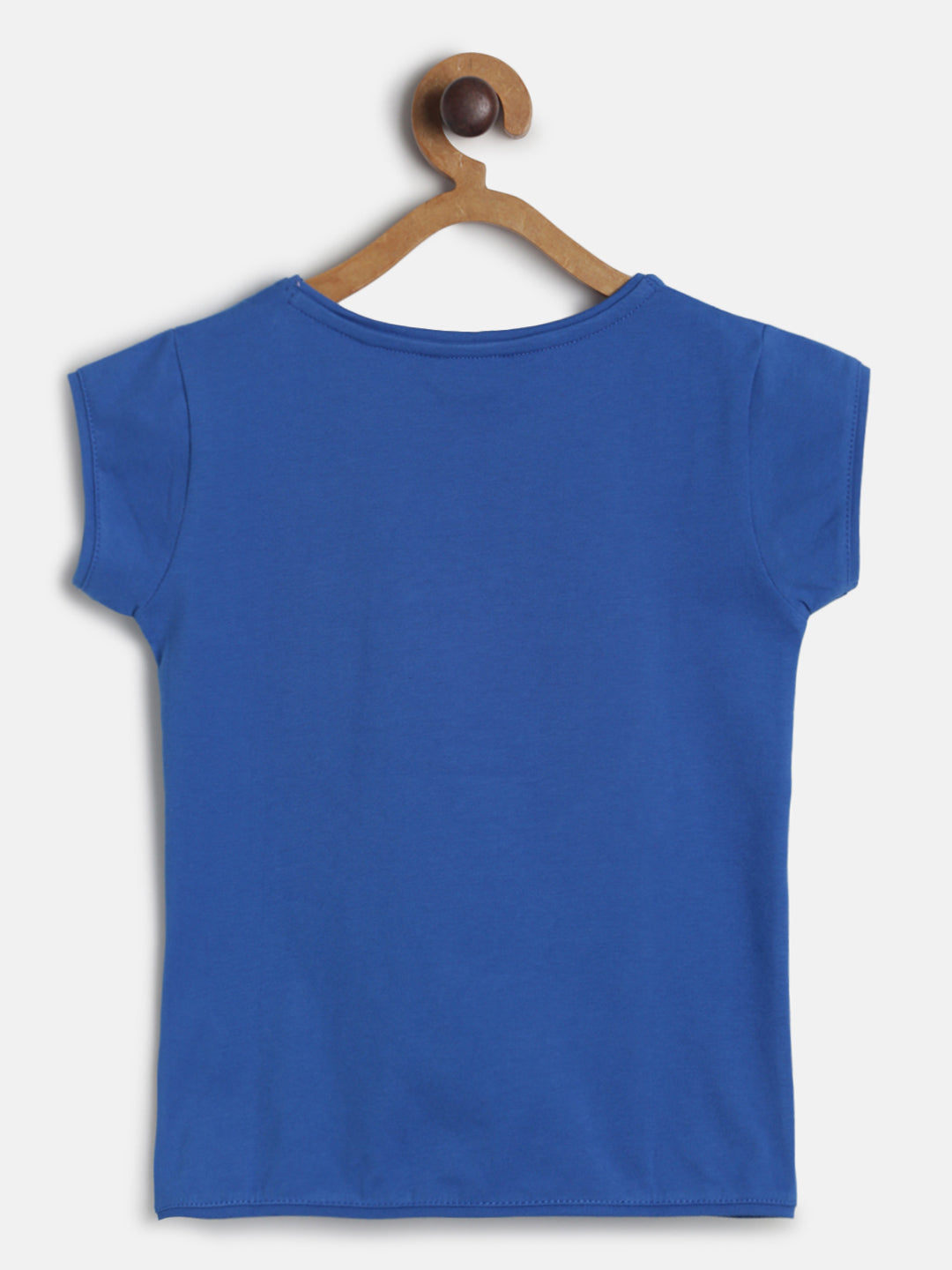 Girls Royal Blue Lycra Print Half Sleeve T-shirt