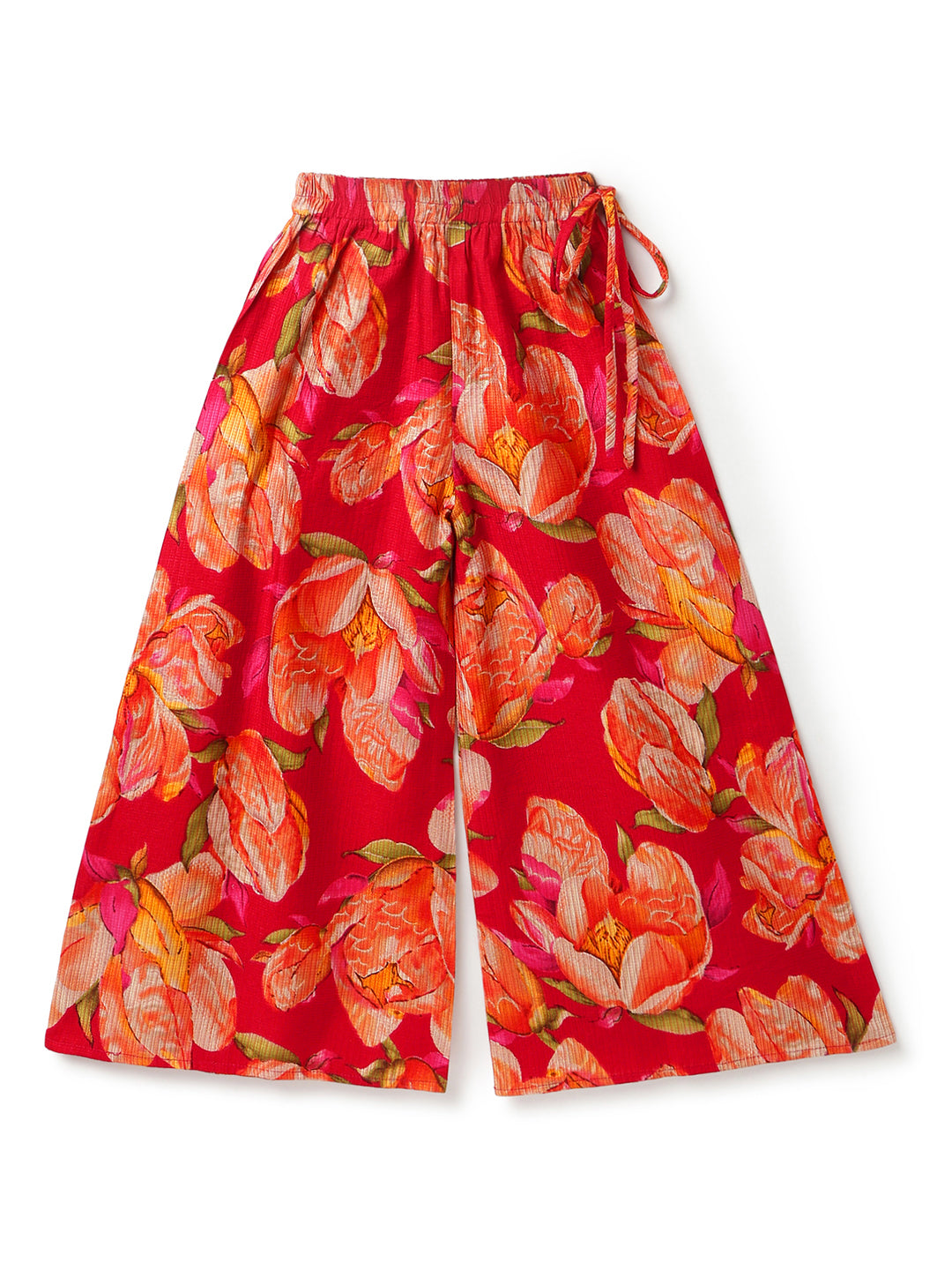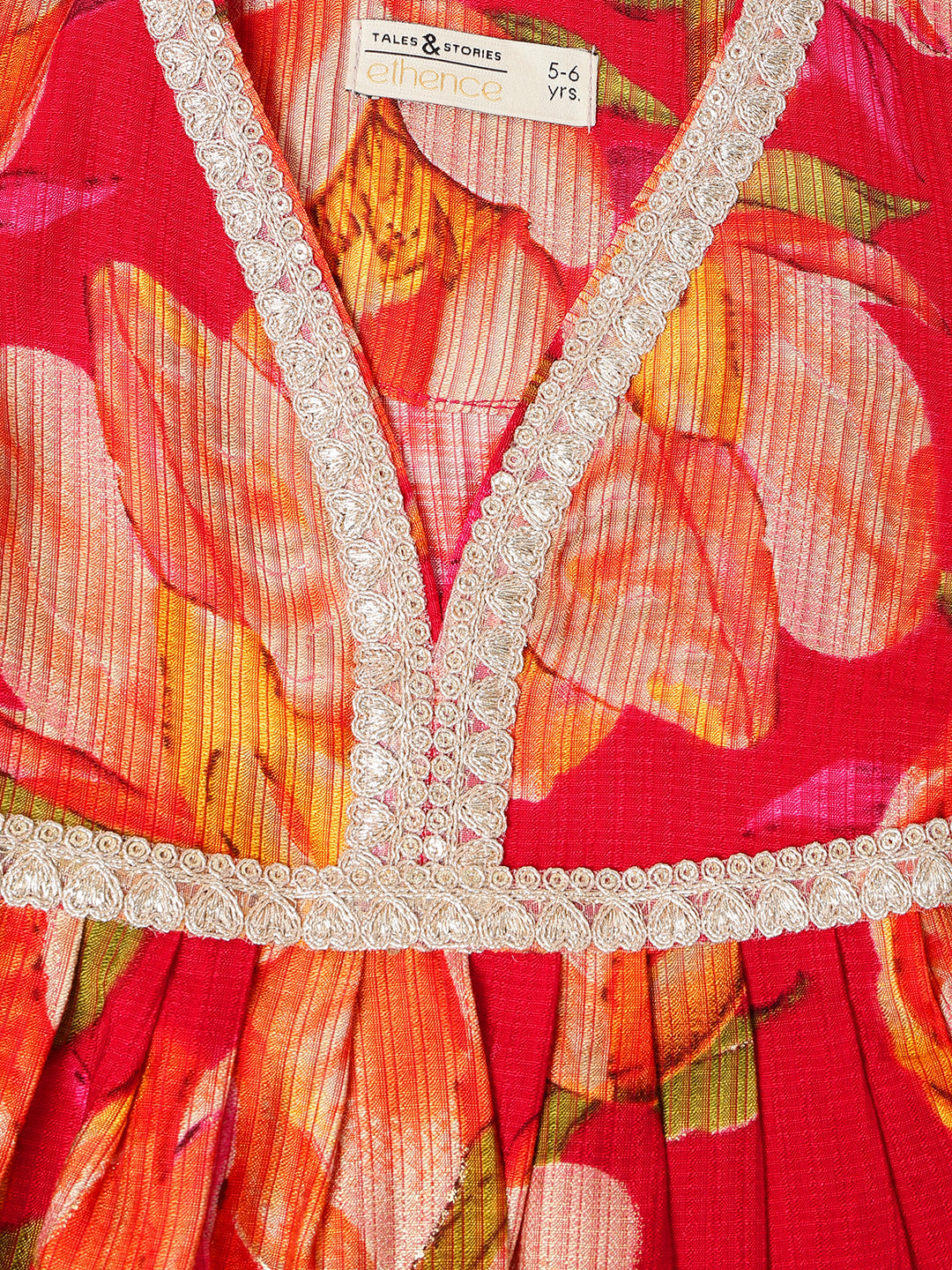 Girls Red Printed V-Neck Viscose Ethnic Kurta Set