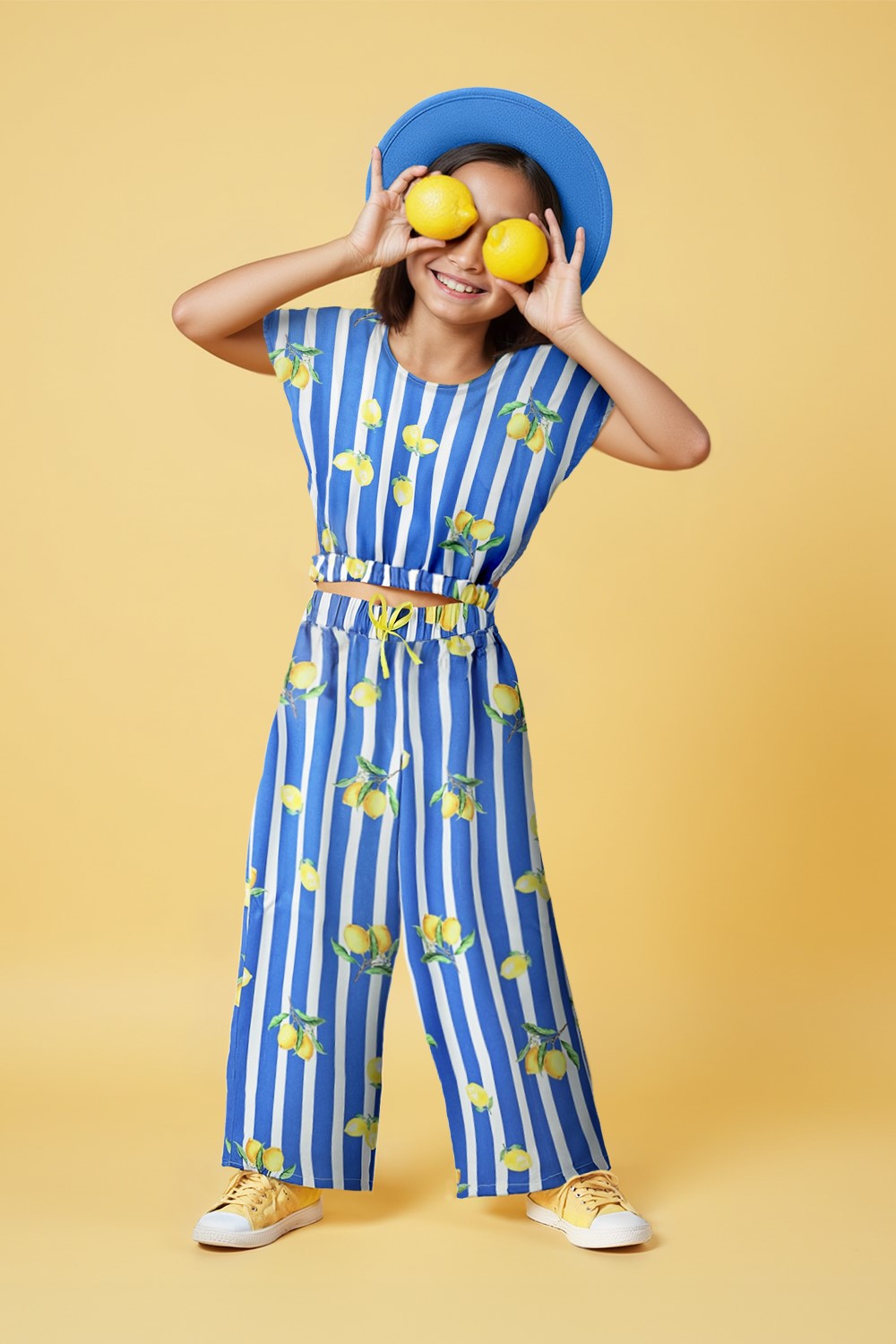 Girls Blue Viscose Stripes Co-Ord Set