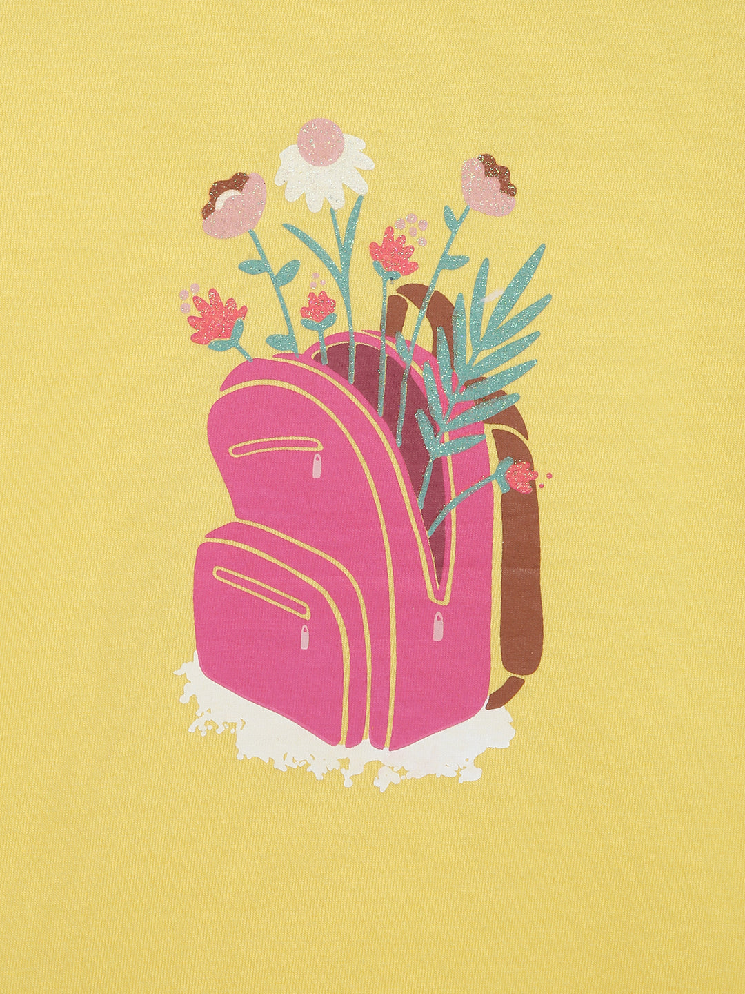 Girls Yellow Cotton Blend Embroidery T-shirt