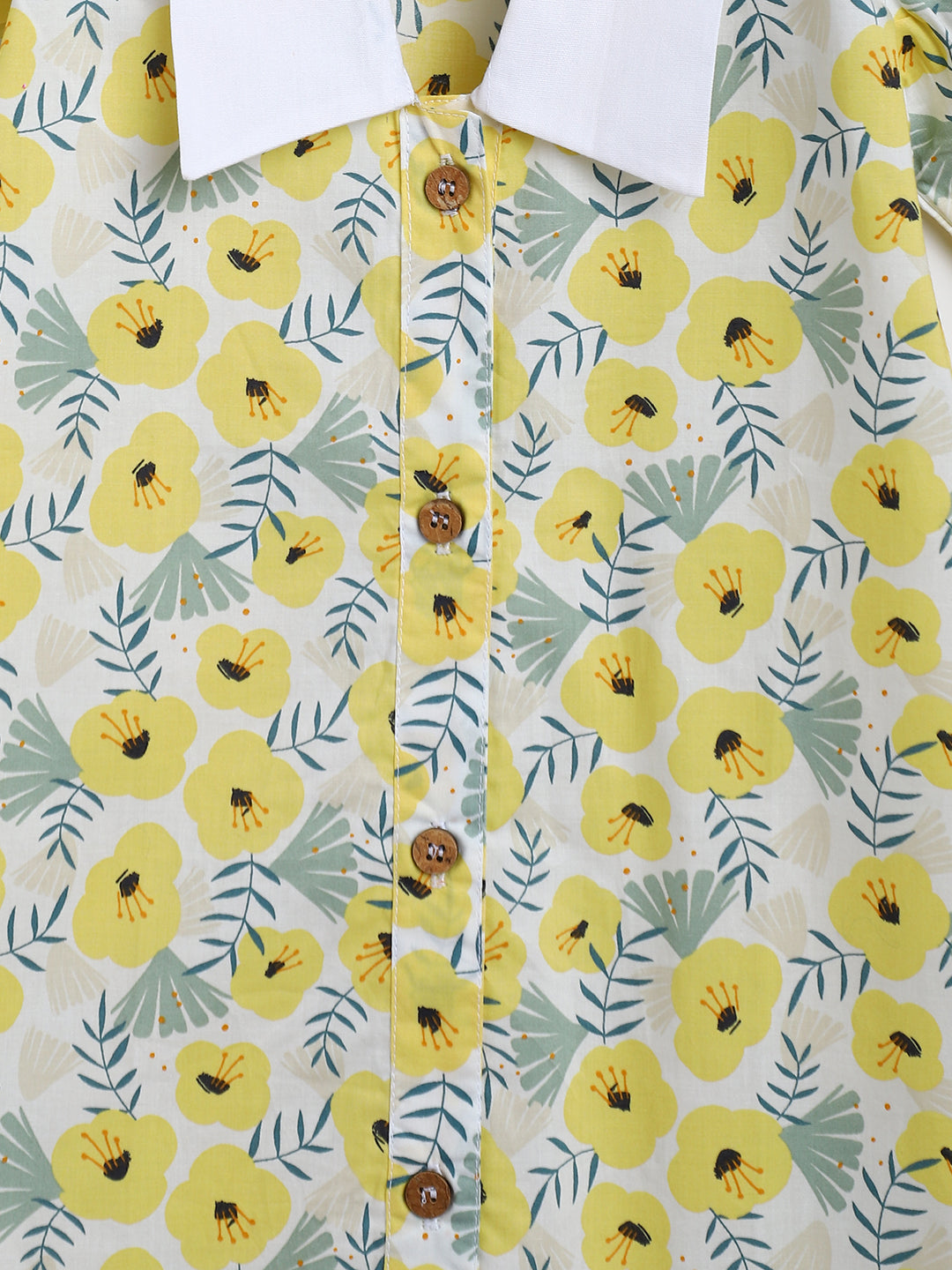 Girls Yellow 100% Cotton 3/4th Sleeve Regular Fit Print Dress