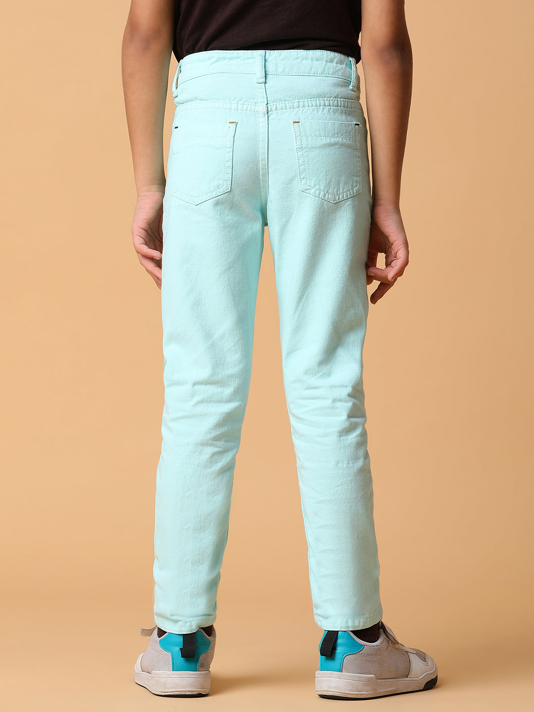 Boys Mint Green Solid Cotton Trouser