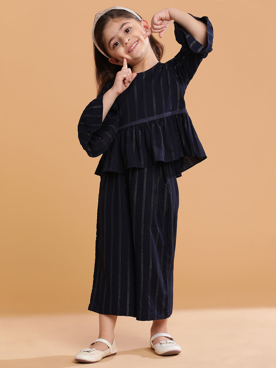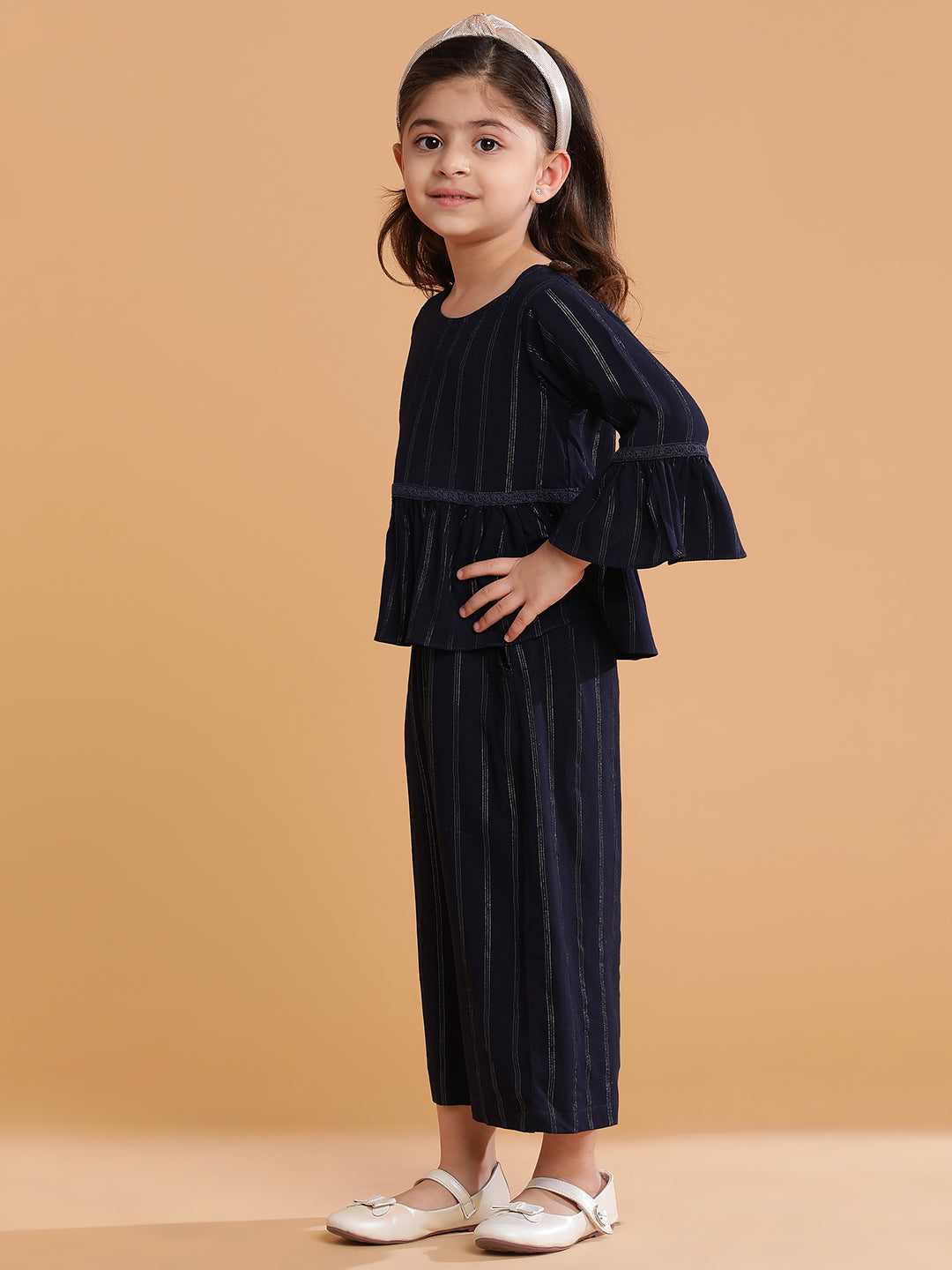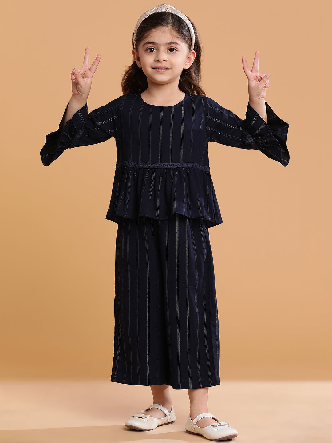 Girls Rayon Navy Blue Striped Co-Ord Set