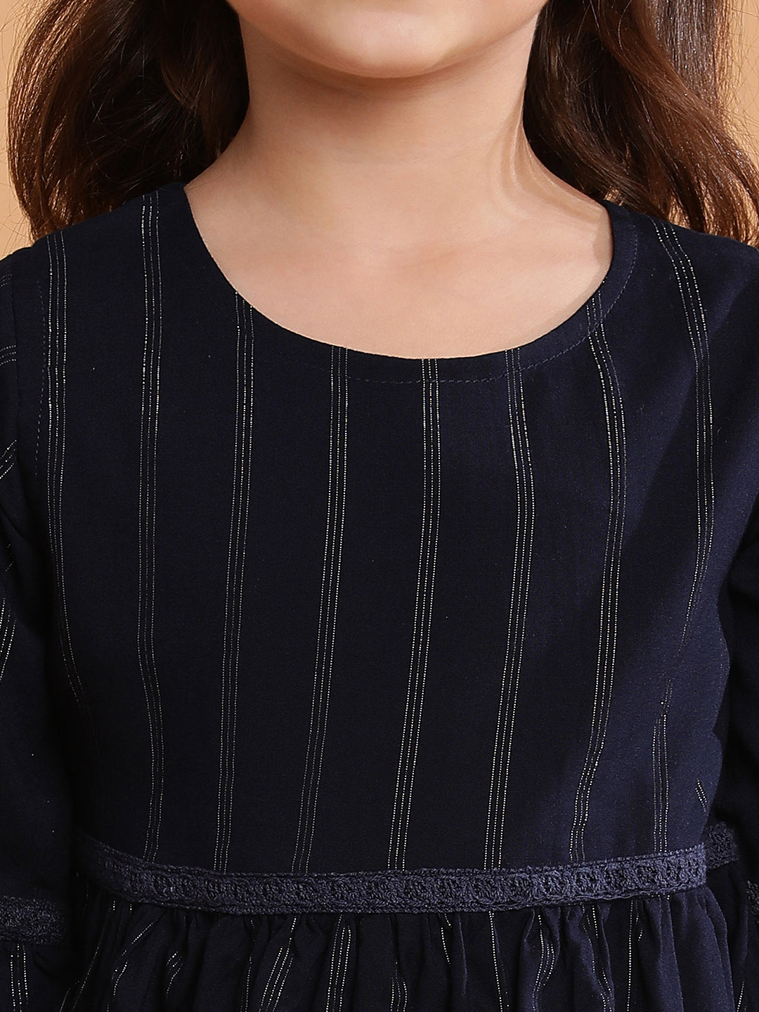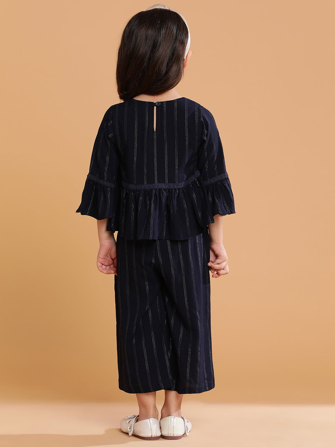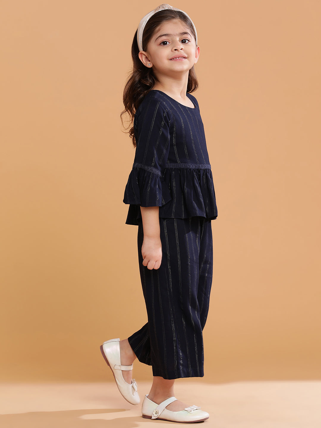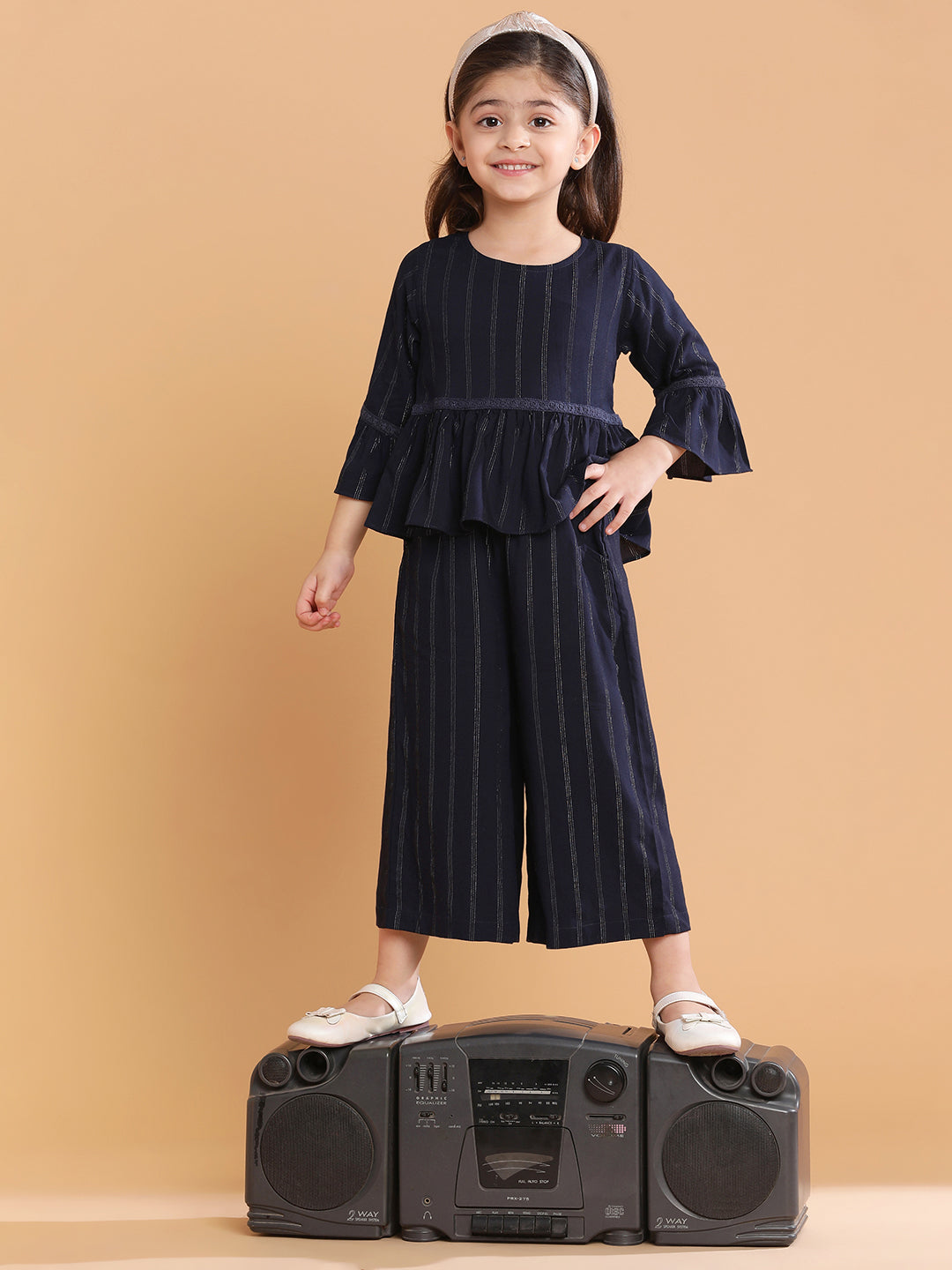 Girls Rayon Navy Blue Striped Co-Ord Set