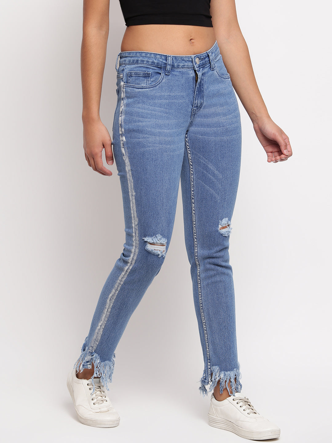 Women Mid Blue Slim Fit Distressed Denim Jeans