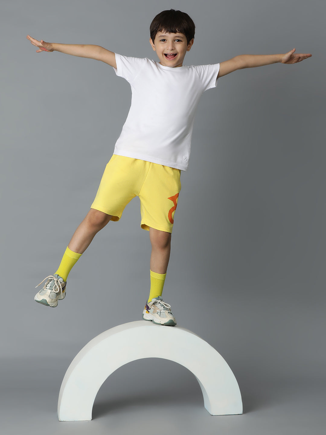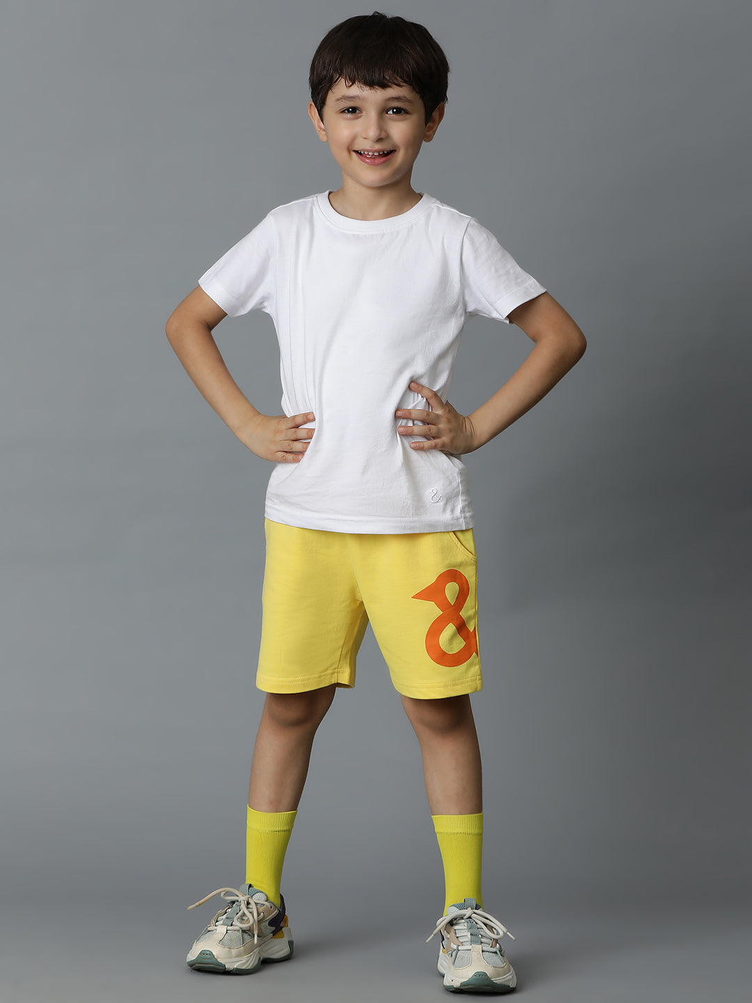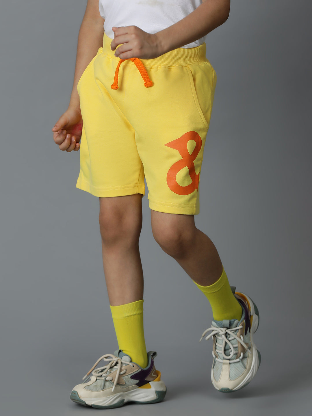 Yellow Printed Cotton Bermuda For Boys